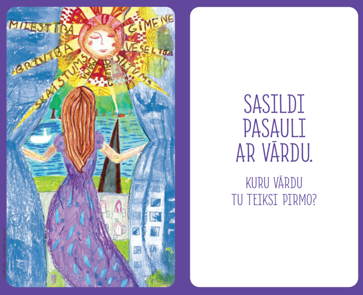 Kartītēs uzdotie jautājumi aicina izzināt sevi un pasauli, domāt par vārda spēku, par vārdiem, kurus runājam paši un par vārdiem, kuri mūsu dzīvēs ir atstājuši pēdas.