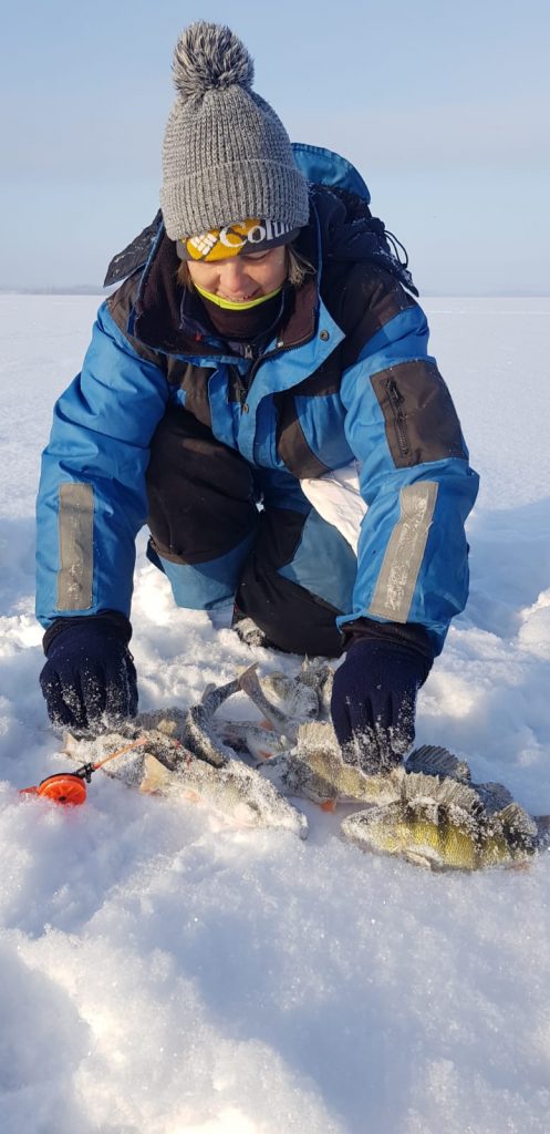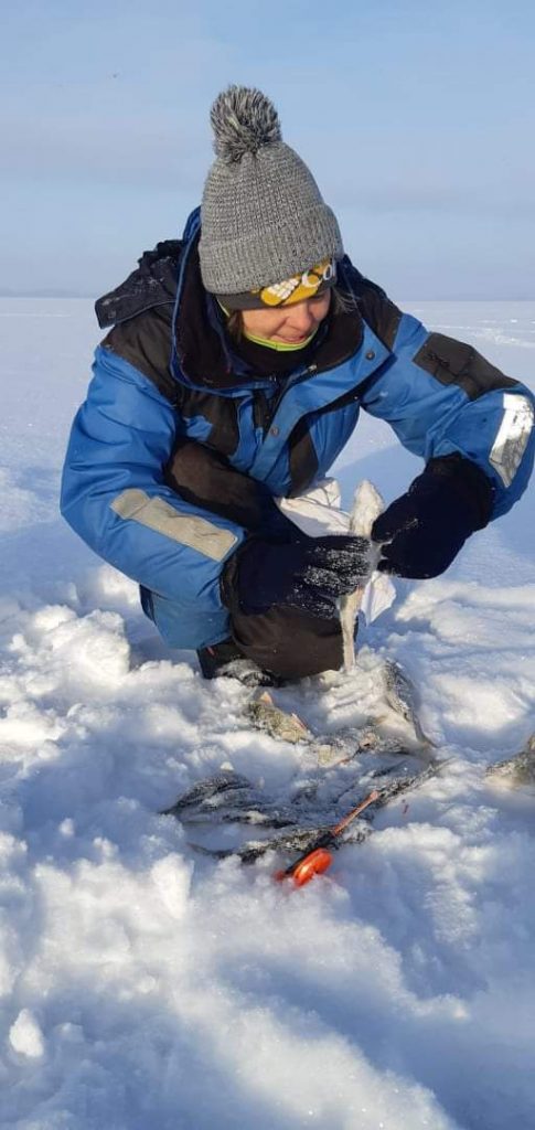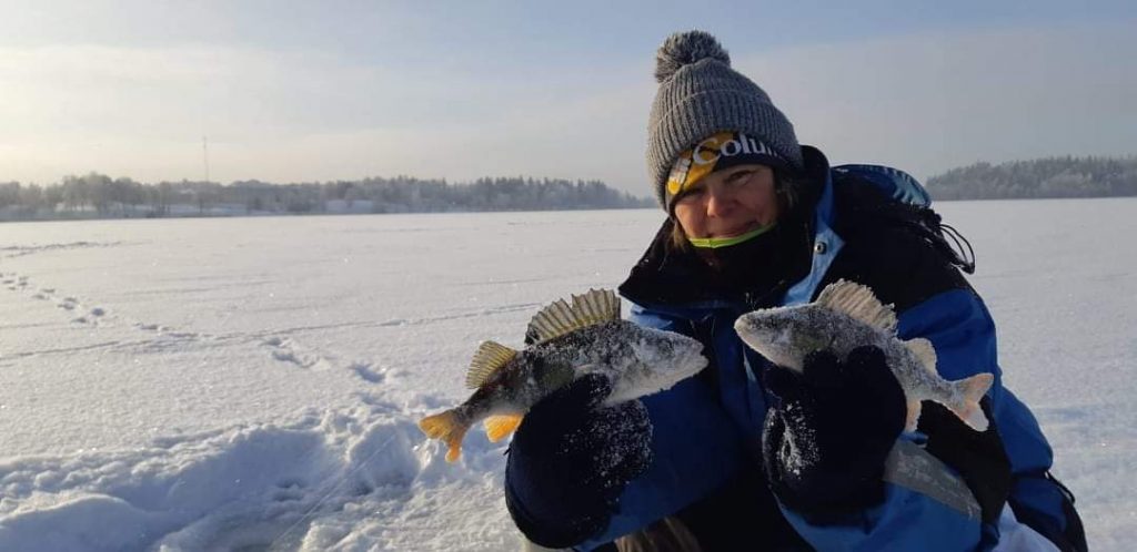 Alūksniete ar zemledus makšķerēšanu nodarbojas jau sešus gadus – tā galvenokārt ir makšķerēšanas procesa baudīšana, taču vienmēr priecē arī garšīgas vakariņas. “Parasti jau lomā ir asari, raudas, gadās pa kādai līdakai, bet reiz bija arī sīga,” palepojas zemledus makšķerniece.