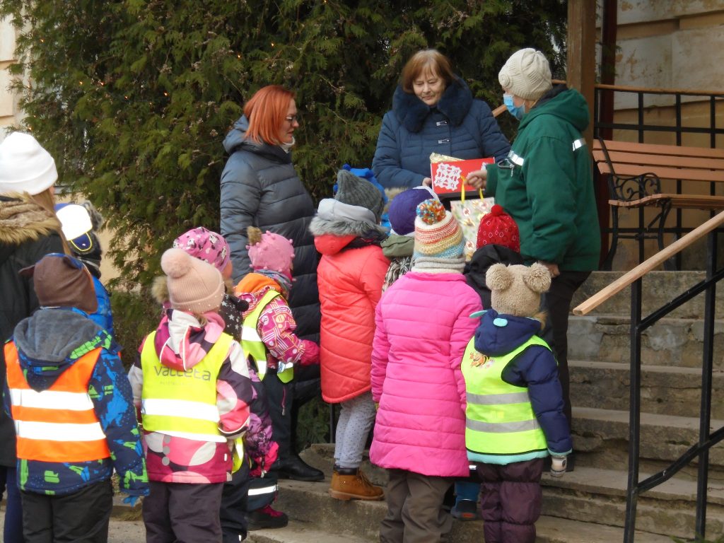 Priecīgi un aizrautīgi viņi stāsta, ka apņēmušies apciemot arī dzīvnieku patversmi un, ka tur dzīvo kaķi un suņi. Saruna, gan nesanāk gara, jo jāsteidzas tālāk, lai paspētu izstaigāt ieplānoto maršrutu. Garajam ceļam bērniem tiek nodots arī salds sveiciens no aprūpes centra iemītniekiem.