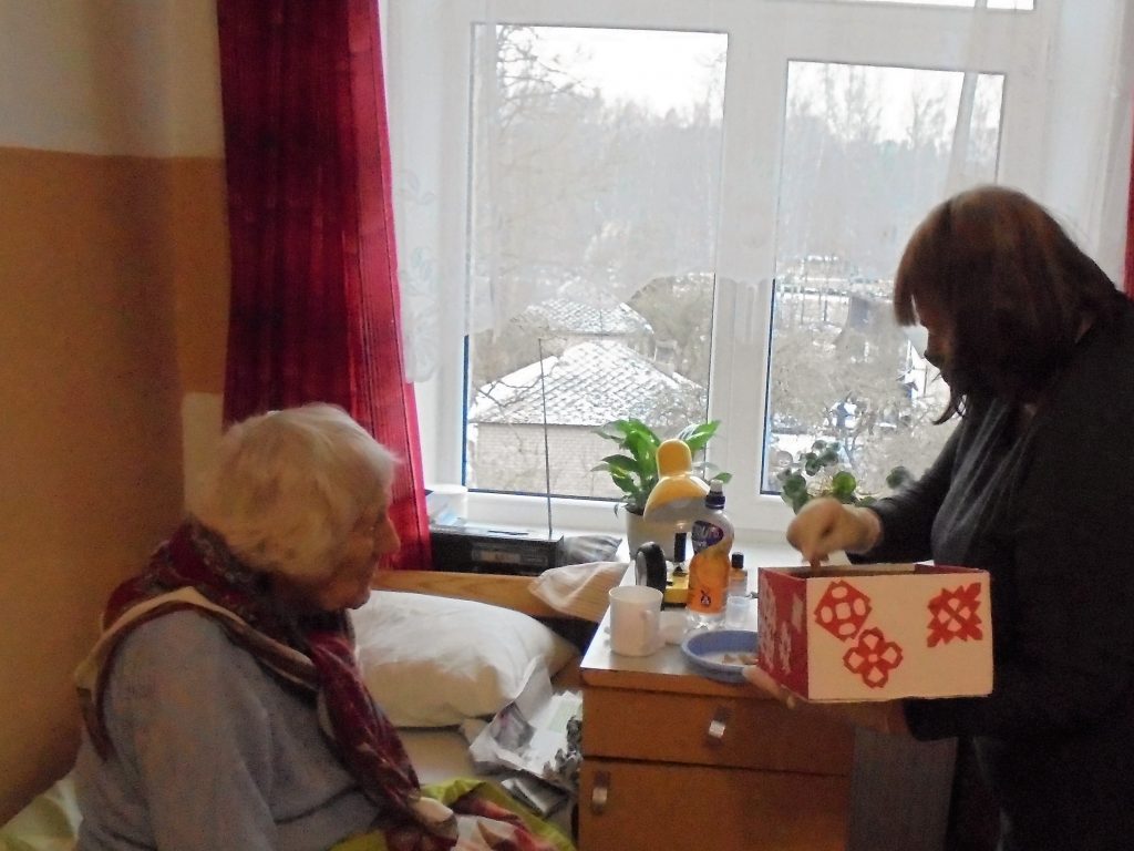 Savu pastaigu maršrutā pirmsskolnieki no bērnudārza “Pienenīte” 13. grupas iekļāvuši arī Sociālās aprūpes centru “Alūksne”. Audzinātājas bērniem māca cienīt un atcerēties vecus cilvēkus. Ceļinieki gan nav nākuši tukšām rokām. Līdzi ir paņemts ciemakukulis – pašu cepti gardumi.
