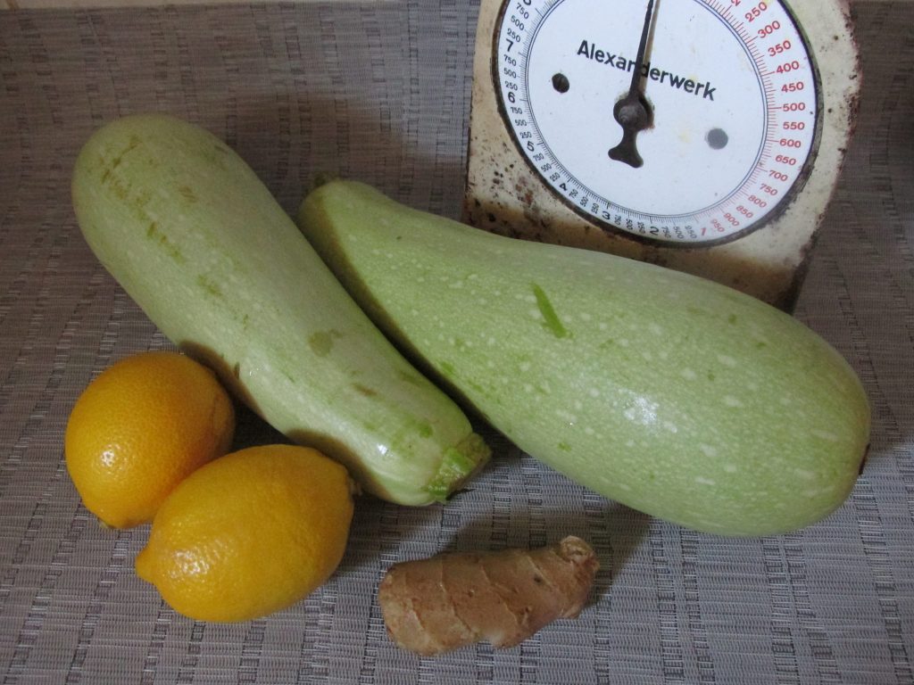 Kabačus nomizoju, izņēmu sēklas un mīkstumu sagriezu nelielos kubiņos (varam arī sarīvēt uz rupjās rīves). Citronus labi nomazgāju, nosusināju un norīvēju tiem dzelteno miziņu – vajadzēs apmēram tējkaroti. Tad citrusaugļiem izspiedu sulu. Ingvera sakni nomizoju un sarīvēju.