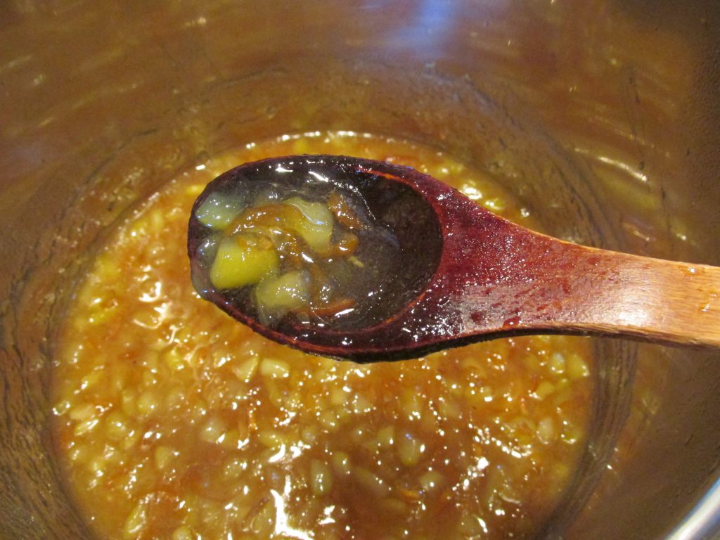 Katlā liku kabačus, pielēju citronu sulu un uz vidējas uguns vārīju, līdz tie mīksti. Pēc tam pievienoju citrona miziņu, ingveru (ja nepatīk miziņas vai ingvera rūgtums un sīvums, tos varam pievienot attiecīgi mazāk – pēc savas garšas), ievārījuma cukuru un arī ledusskapī noglabātās un tieši šoreiz ļoti noderīgās cidoniju sukādes. Ja to vietā vēlamies pievienot, piemēram, cukurotu ingveru, pietiks ar apmēram 50 gramiem. Taču varam iztikt pavisam bez sukādēm, arī tā ievārījums būs ļoti gards. Visu, ik pa laikam apmaisot, vārīju apmēram desmit minūtes. “Zapti” mazliet padzesēju un salēju nelielās burciņās. Kad ievārījums jau bija atdzisis, burciņas – kopumā vismaz litra tilpumā – aizvākoju.