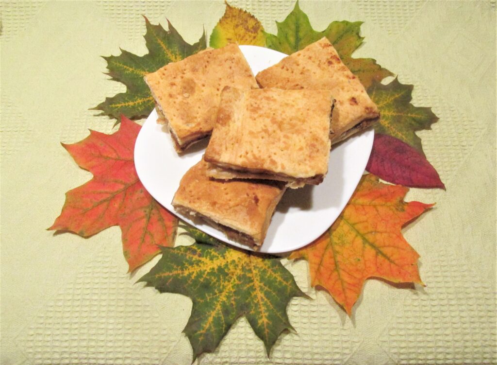 Cepu apmēram pusstundu, līdz mīkla kļuva zeltaini brūna. Tad izņēmu no krāsns un saliku mīklas plāksnītes kopā pa divām – tā, lai pildījums būtu vidū. Pēc tam tās pārgriezu, lai veidojas kantaini gabaliņi, un – sešas burvīgas ābolkūkas gatavas!