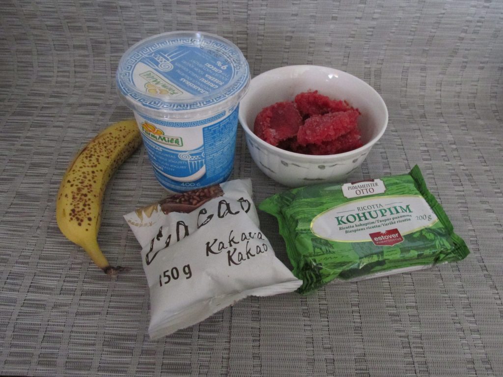 Vasarai piestāv saldējums. Un ja vēl tas ir pašu pagatavots! Šoreiz vēlējos izmēģināt šo recepti, tādēļ paciņu biezpiena “Ricotta” kopā ar dabīgo grieķu jogurtu samaisīju līdz krēmveida konsistencei. Banānu sagriezu kubiņos, zemeņu ogas arī vajadzētu sagriezt gabaliņos, taču te vēl izmantoju ar nelielu cukura piedevu saldētās sasmalcinātās šīs dārza ogas. Zemenes un banānu, kā arī ar pavisam nelielu daudzumu cukura sajauktu kakao pulveri piemaisīju biezpiena masai. Nu visu ar mikseri labi saputoju. Saldējuma masu izliku īpašajos trauciņos un ievietoju saldētavā. Tur tam vajadzētu atrasties vismaz trīs stundas. Ja masu lejam kādā kastītē, vēlams ik pēc pusstundas saldējumu vēl arī apmaisīt. Lai veselīgo, nepārsaldināto gardumu vieglāk atbrīvotu no trauciņiem, tos dažas sekundes paturēju karstā ūdenī.