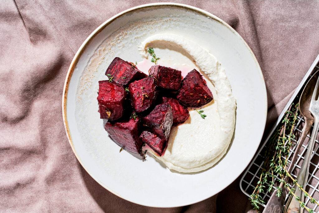 Krāsnī ceptās bietes ar mārrutku-maskarpones krēmu