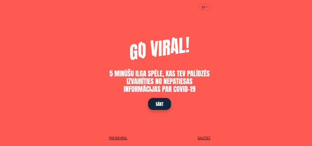 Arī Latvijā pievērsta uzmanība dezinformācijai un “infodēmijai”, kas līdz šim ir maldinājusi cilvēkus par Covid-19 nopietnību, tāpēc it pieejama izglītojoša tiešsaistes spēle “Go Viral!”. Spēlē, kas tapusi Valsts kancelejai sadarbojoties ar Apvienotās Karalistes Valsts kanceleju un Kembridžas Universitāti, ikviens interesents var iepazīties ar metodēm, kas tiek izmantotas viltus ziņu izplatīšanai sociālajos medijos, lai palielinātu savu spēju stāties tām pretī.
