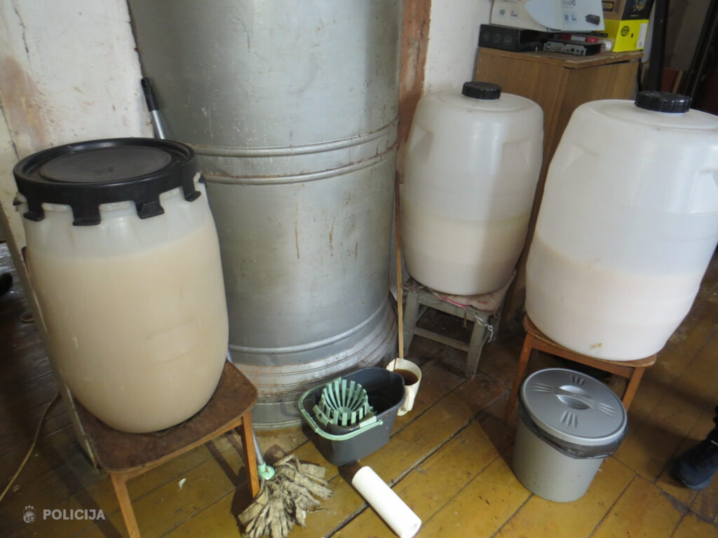 alkohola, kas satur 23 litrus kandžu un 158 litrus brāgu. Tāpat izņemta skaidra nauda – 3215 eiro