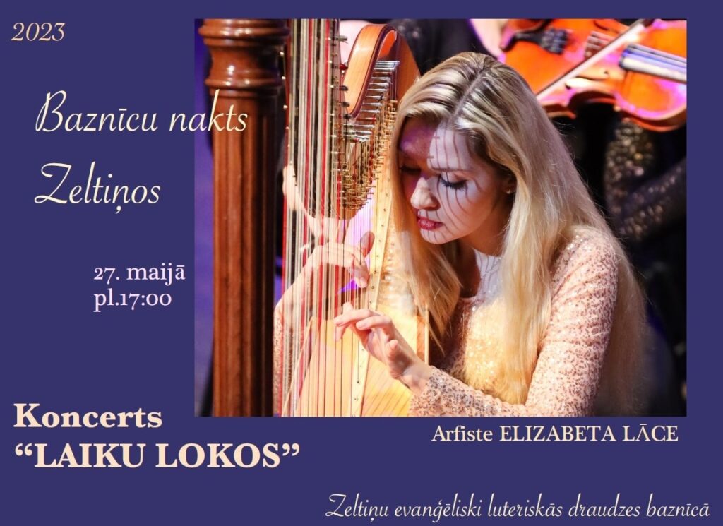 Zeltiņu evaņģēliski luteriskajā baznīcā pulksten 17.00 būs iespēja dzirdēt arfas skanējumu un spēlēs arfiste Elizabete Lāce.