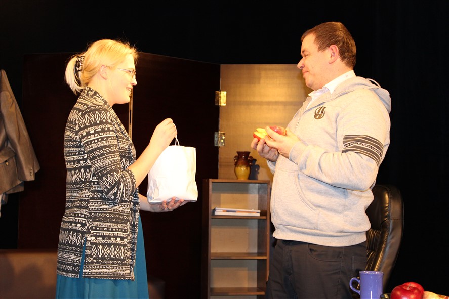 Attēlos – daži mirkļi no izrādes “Viesnīcas noslēpums” mēģinājuma Ulda Sedlenieka Alūksnes Tautas teātrī “Slieksnis” un pēdējās Alūksnes novada amatierteātru skates pagājušā gada novembrī.