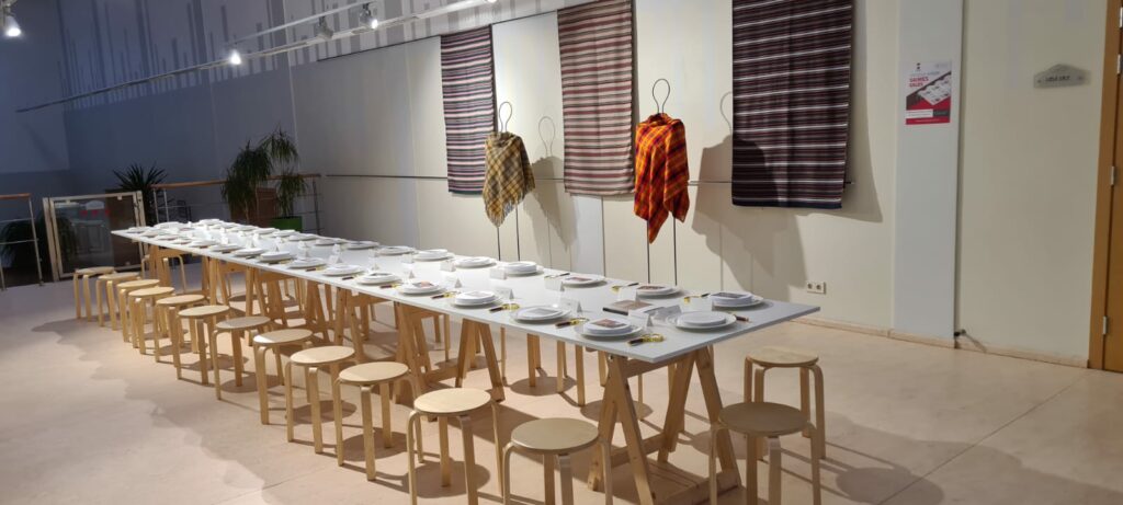 “Izstādi piedāvā Latvijas Nacionālais kultūras centrs (LNKC), kas koordinē Latvijas dzīvo tradīciju iekļaušanu Latvijas Nemateriālajā kultūras mantojuma sarakstā. Nacionālo sarakstu veido paši tradīciju kopēji un Nemateriālā kultūras mantojuma padome, izvērtējot pieteikumus. Četros gados Latvijas Nemateriālā kultūras mantojuma sarakstā iekļautas 24 vērtības, tai skaitā arī Pededzes pagasta pareizticīgo iedzīvotāju tradicionālais kāzu rituāls 2019. gadā, ar kurām apmeklētāji varēs iepazīties scenogrāfes Patrīcijas Baltiņas veidotajā ekspozīcijā “Saimes galds”. Latviešiem ir jēdziens “saimes galds” – tas ir galds, pie kura visiem sanākt, mieloties, izrunāties, izdziedāties, pieminēt tos, kuru vairs nav ar mums kopā, pie vajadzības arī izstrīdēties un atkal salabt. Pie saimes galda mēs esam viens veselums,” par izstādi stāsta Alūksnes novada Kultūras centra kultūras darba speciāliste Līva Leimane.