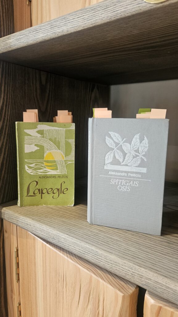 Ilgi domāts, kur un kā izstādi izvietot, līdz domas un iespējas salikušās vislabākajā versijā. “Otrā stāva ekspozīciju zālē sākotnēji plānojām rīkot izglītojošās nodarbības, taču vēlāk sapratām, ka tieši Aleksandra Pelēča izstāde varētu par šādu vietu kļūt. “Telpas pirmais elements bija meistara Harija Stradiņa Pelēča simtgadei veidotais skapis no lapegles un spītīgā oša, par kuriem Pelēcis runā savos darbos. Tagad to papildinās viss pārējais – te tiks eksponēti autentiski priekšmeti, audio ieraksti, skapī būs literārie darbi un to fragmenti no Aleksandra Pelēča atstātā mantojuma, kā arī saklausāma viņa balss audio ierakstos. Vienlaikus svarīgi, ka tā nebūs ekspozīcija ierastajā izpratnē – tikai acīm vai ausīm, te apmeklētāji varēs praktiski darboties un aktīvi iesaistīties ekspozīcijas satura izzināšanā,” stāsta L. Apšusala.