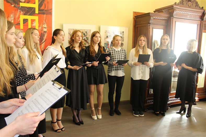 Ar muzikāliem priekšnesumiem izstādes atklāšanā priecēja Ernsta Glika Alūksnes Valsts ģimnāzijas vokālais ansamblis “Anemones” un skolotāja Ina Perevertailo.