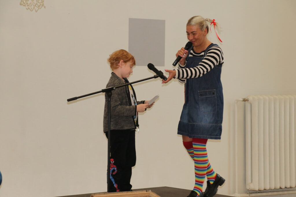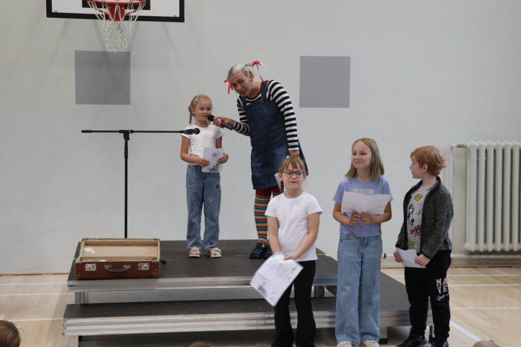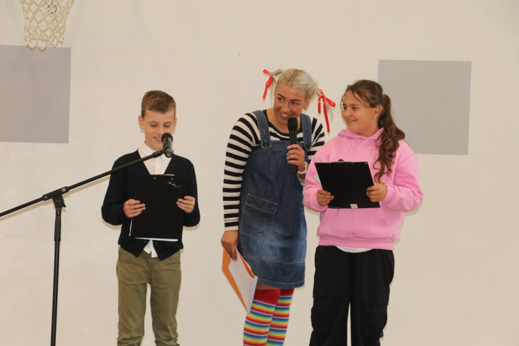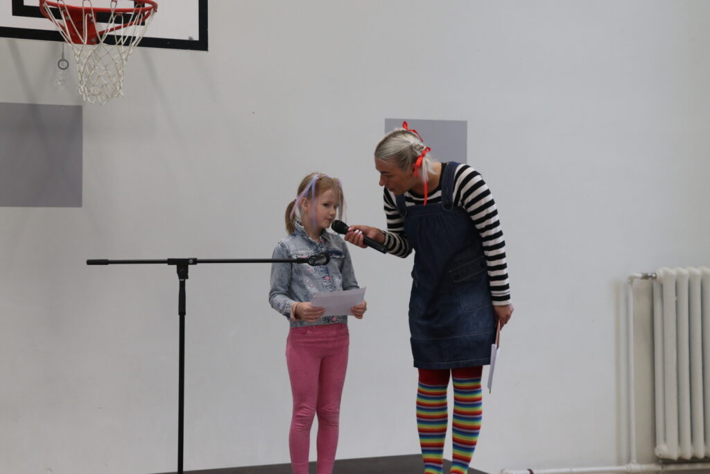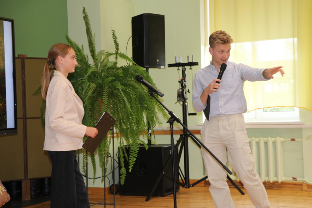 Sākumskolas posma skolēniem pasākumu vadīja allaž smaidīgā Laura Ozoliņa, kura iejutās Pepijas Garzeķes lomā. Savukārt vecāko klašu grupu jauniešus uz skatuves aicināja kolorītais pasākumu vadītājs, influenceris un radio personība Lauris Zalāns.