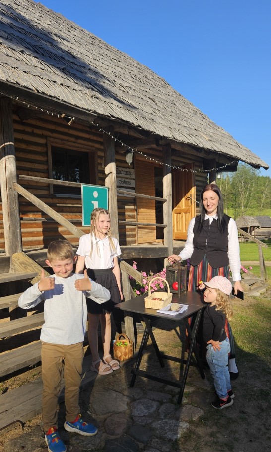 Katru ciemiņu viesmīlīgi sagaidīja Viktora Ķirpa Ates muzejs “Vidzemes lauku sēta” vadītāja Lāsma Kaupuža ar čakliem palīgiem, kuri pastāstīja, kur kādas aktivitātes meklējamas un dalīja našķus veiksmīgākajiem aktivitāšu dalībniekiem.