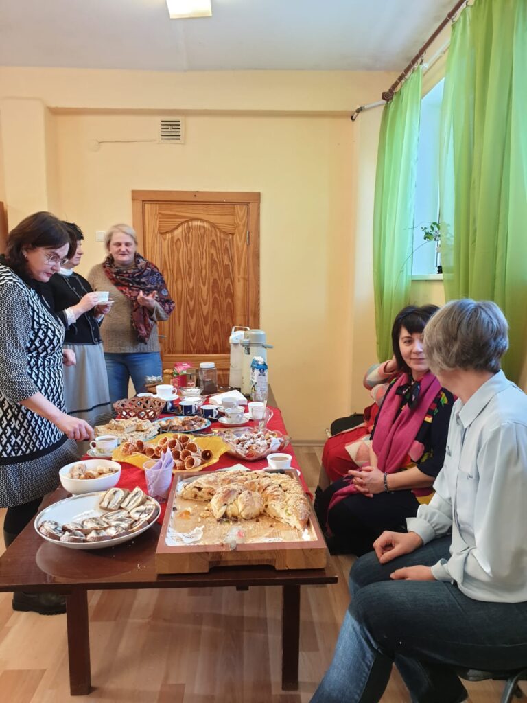 Izstādes rīkotājas bija sarūpējušas arī cienastu – dažādus pašu gatavotus našķus, tēju, kafiju, un aicināja izstādes apmeklētājus uzkavēties ilgāk, parunāties. “Atmosfēra bija mājīga, diena aizritēja sarunās un smieklos, bija apmeklētāji, kas atnāca pulksten 11.00, bet prom devās īsi pirms trijiem pēcpusdienā, tātad jutās labi,” saka M. Svārupe.