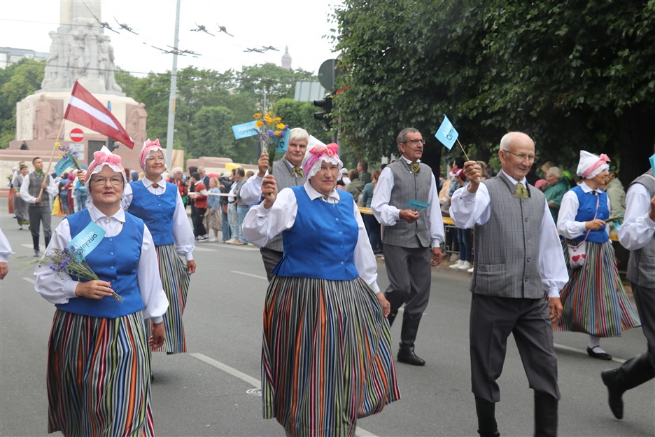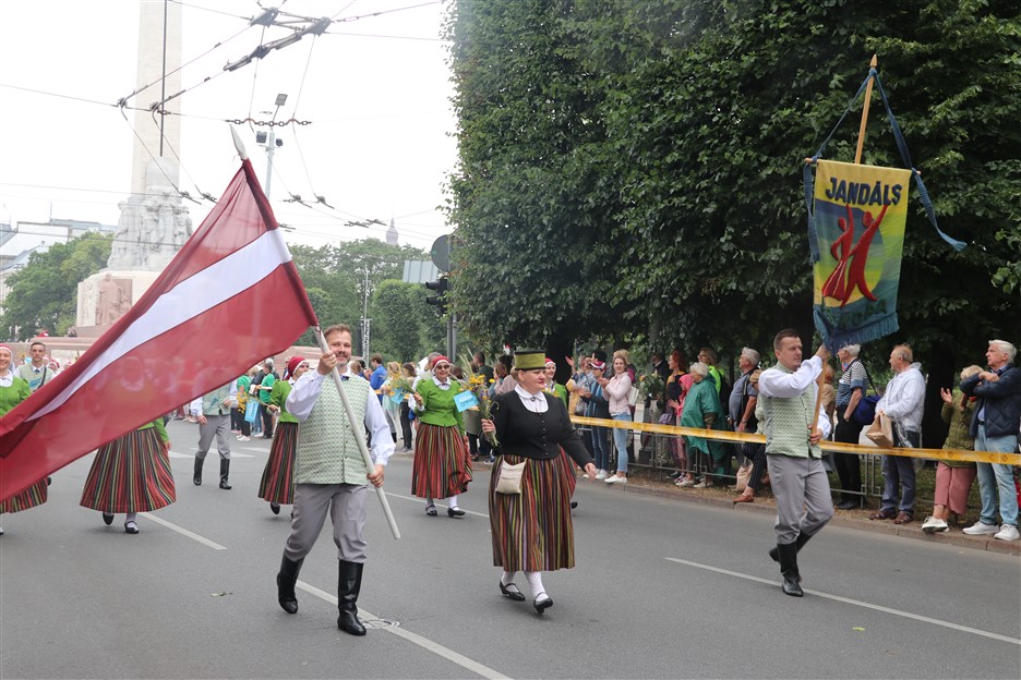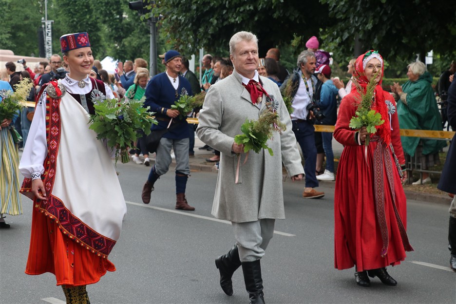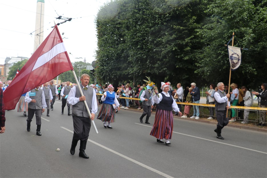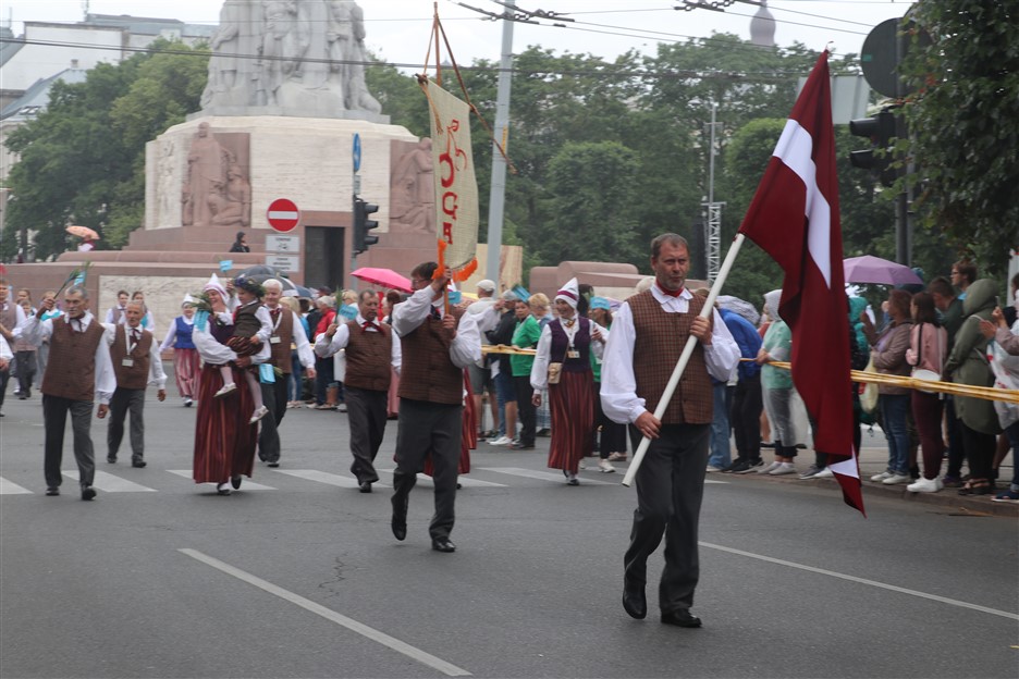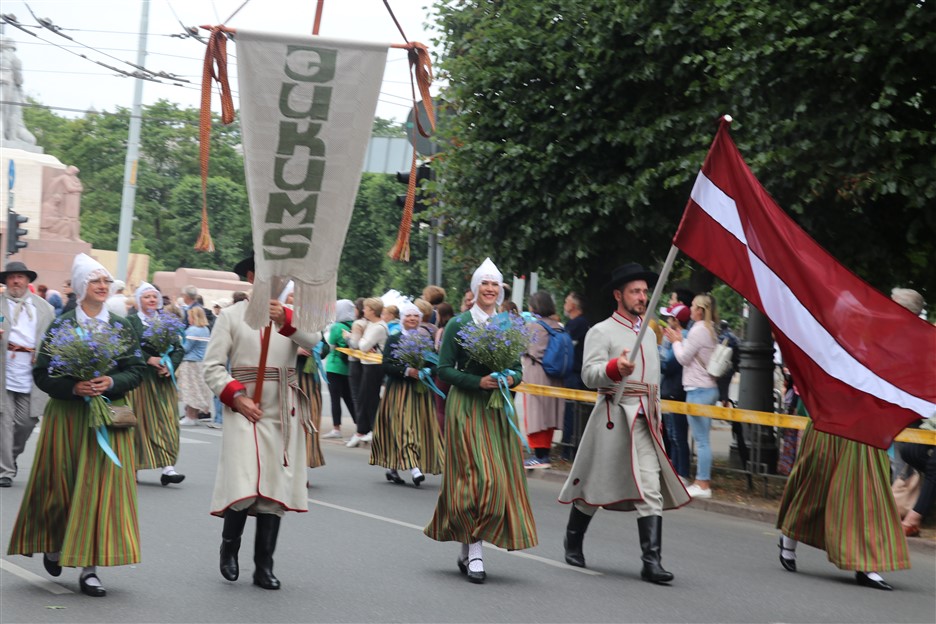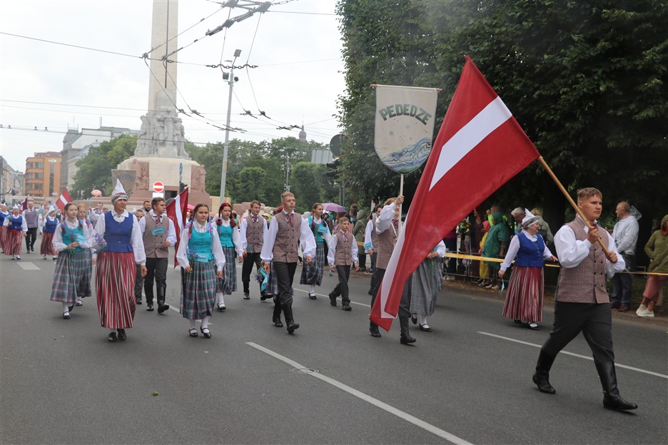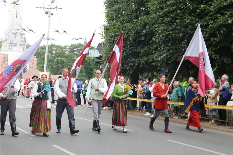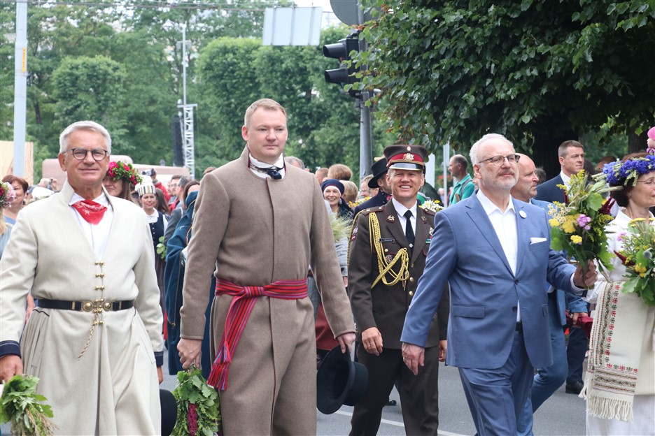 Šodien Rīgas ielas pieskandināja XXVII Vispārējo latviešu Dziesmu un XVII Deju svētku gājiens “Novadu dižošanās”. Tas sākās pie Brīvības pieminekļa ar Latvijas Valsts prezidenta Egila Levita un Latvijas Republikas kultūras ministra Naura Puntuļa uzrunām.