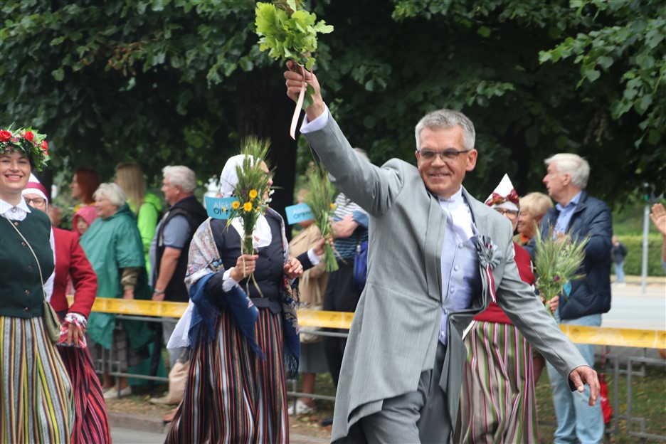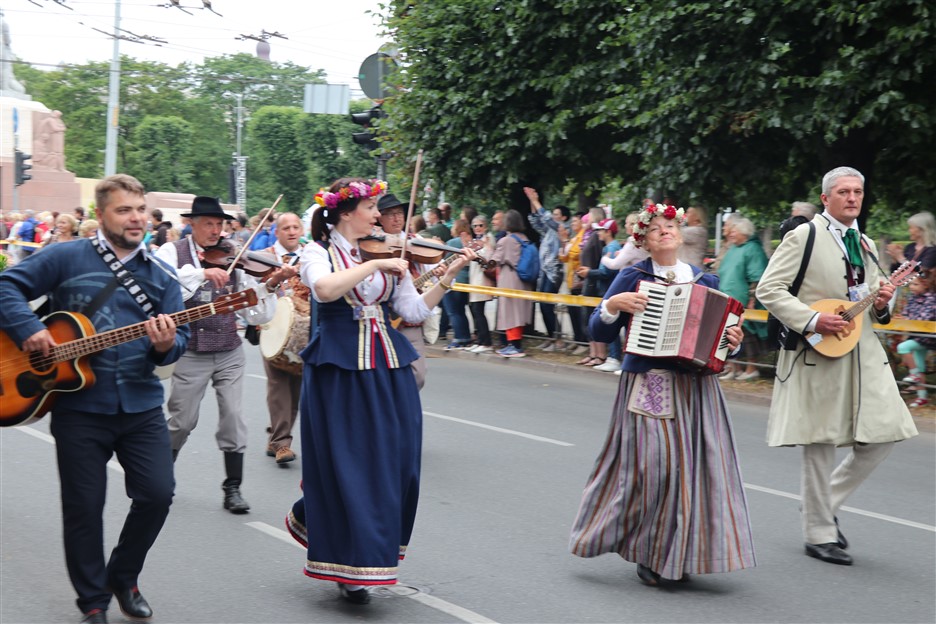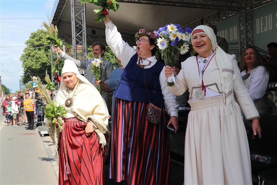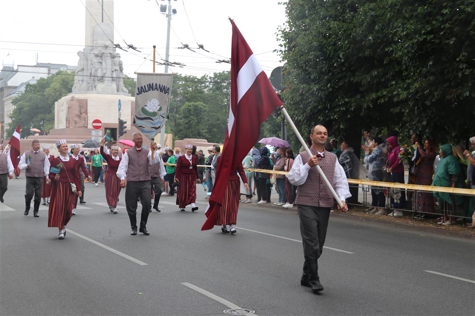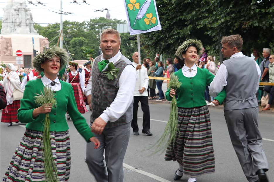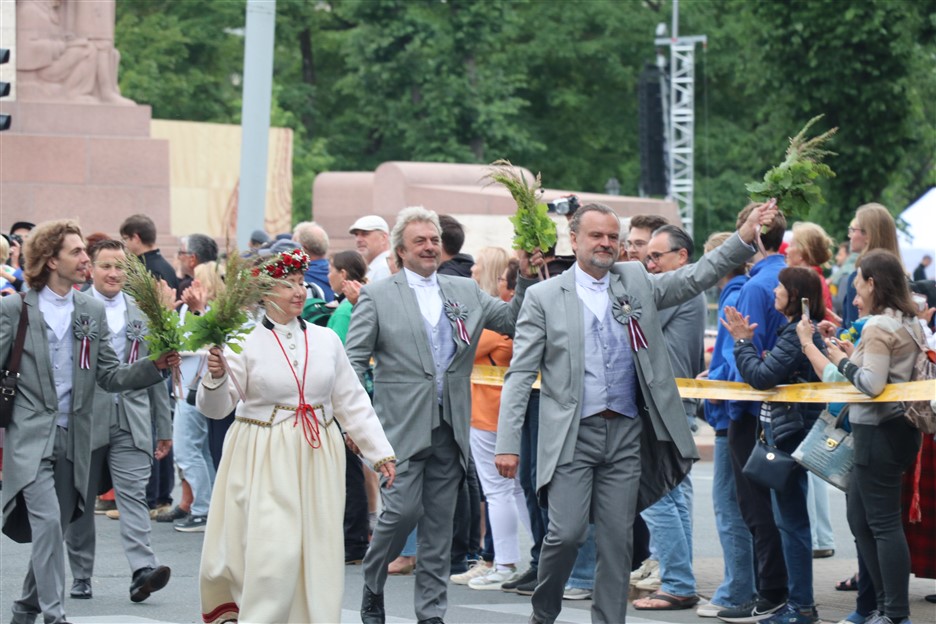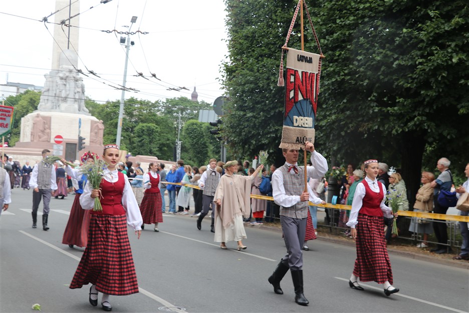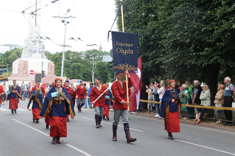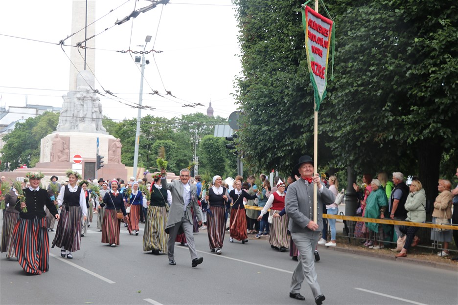 Šodien Rīgas ielas pieskandināja XXVII Vispārējo latviešu Dziesmu un XVII Deju svētku gājiens “Novadu dižošanās”. Tas sākās pie Brīvības pieminekļa ar Latvijas Valsts prezidenta Egila Levita un Latvijas Republikas kultūras ministra Naura Puntuļa uzrunām.