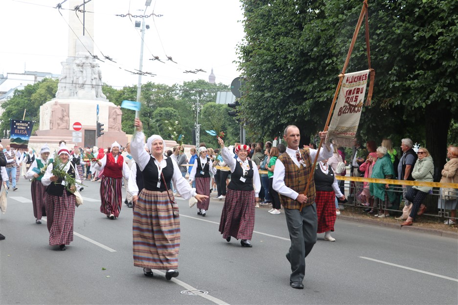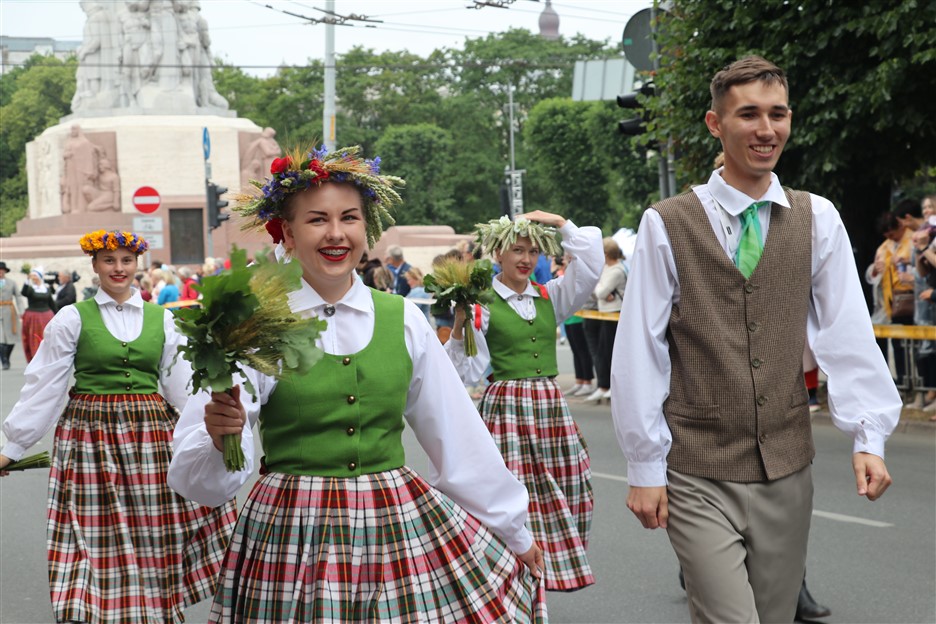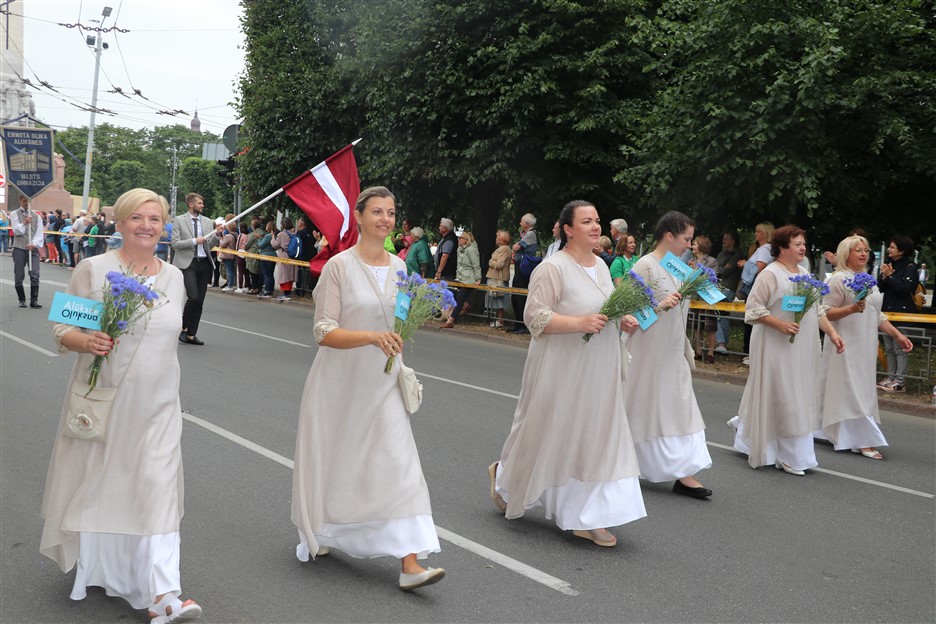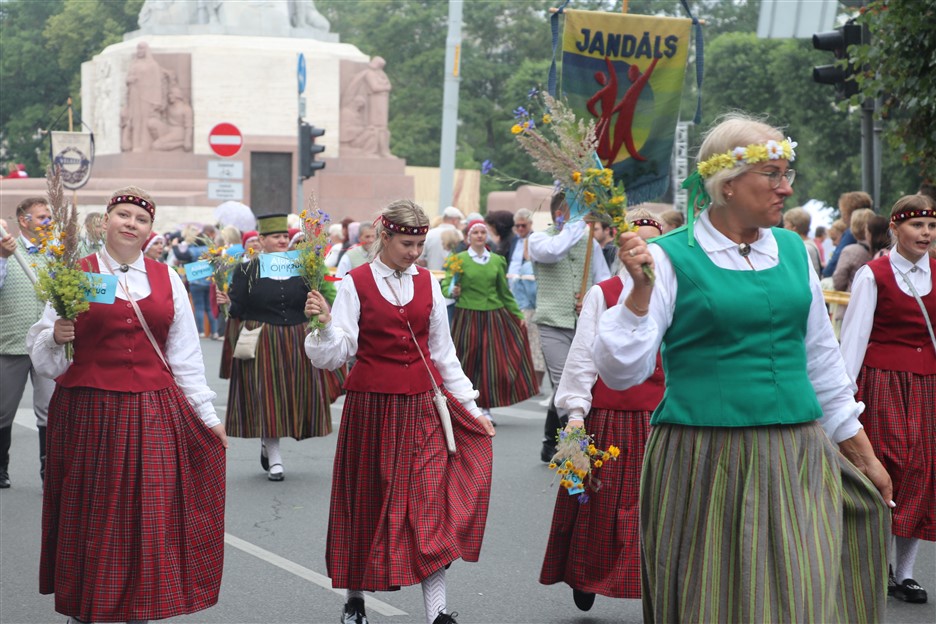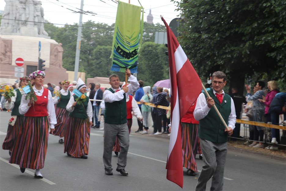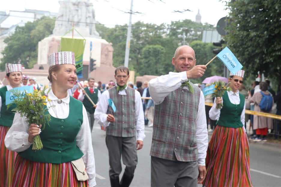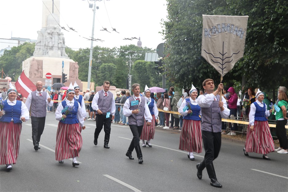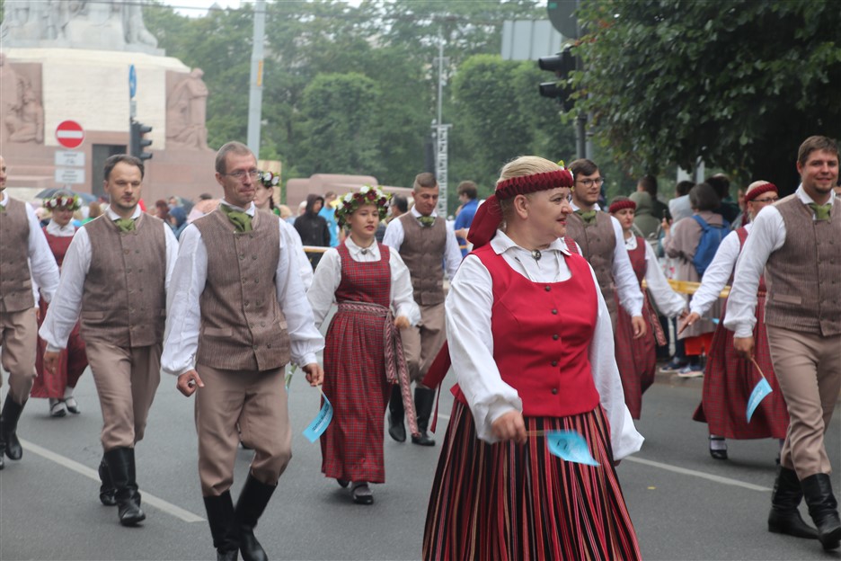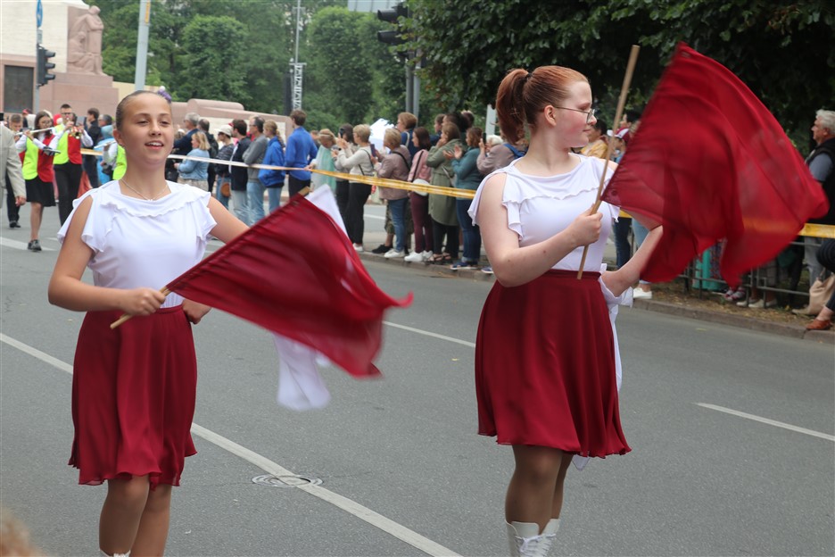 Šodien Rīgas ielas pieskandināja XXVII Vispārējo latviešu Dziesmu un XVII Deju svētku gājiens “Novadu dižošanās”. Tas sākās pie Brīvības pieminekļa ar Latvijas Valsts prezidenta Egila Levita un Latvijas Republikas kultūras ministra Naura Puntuļa uzrunām.