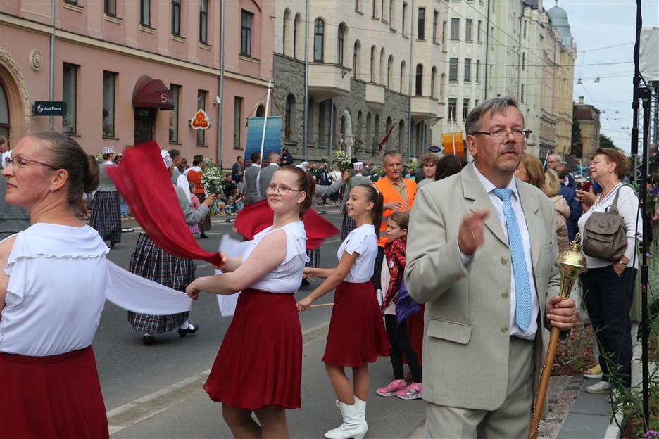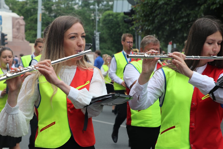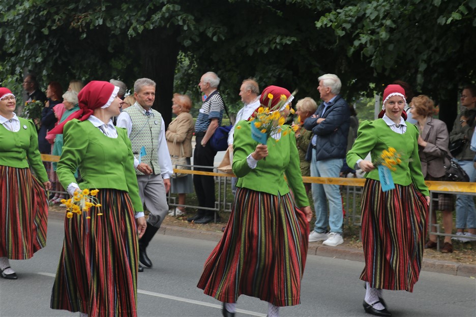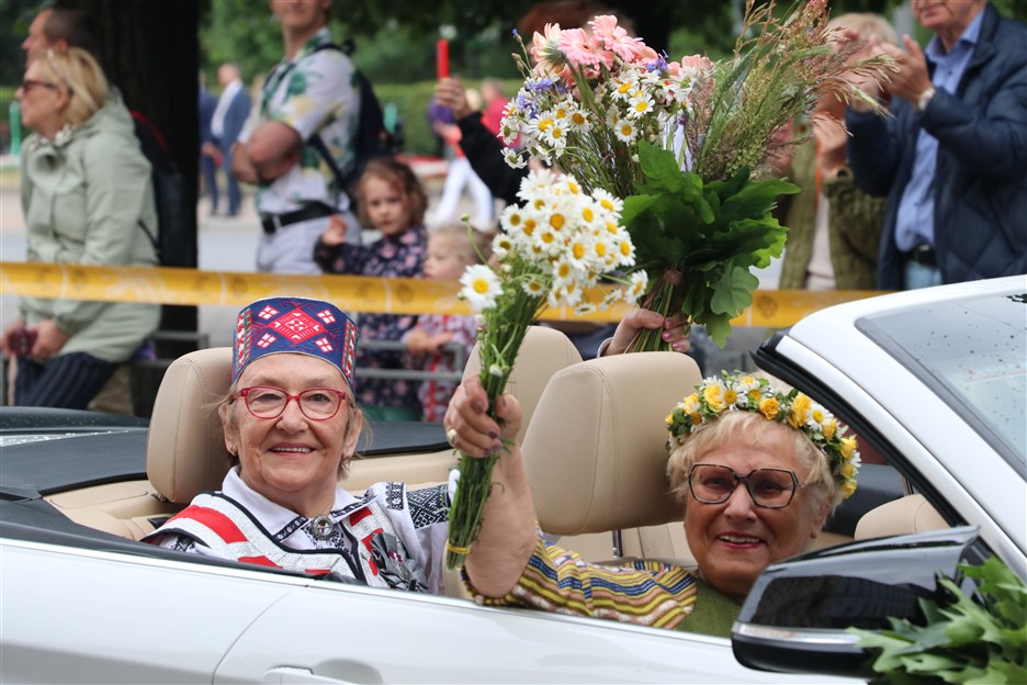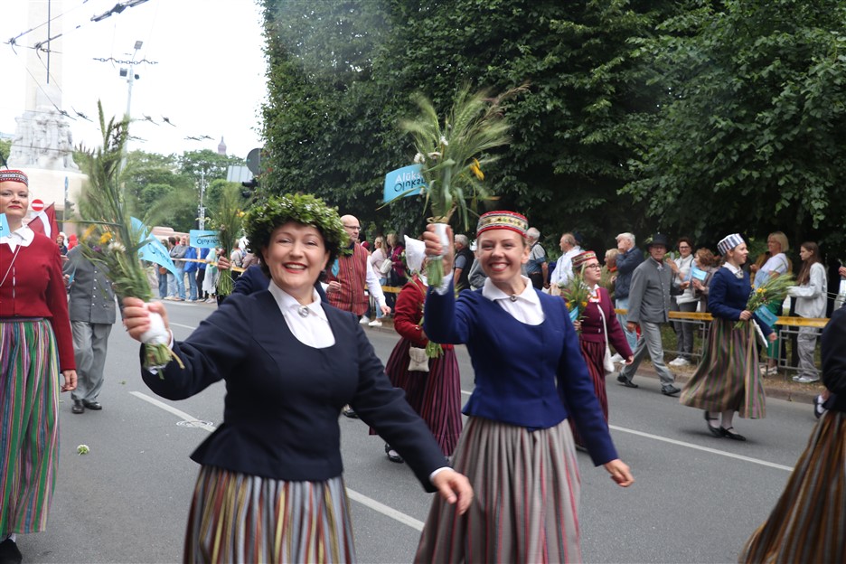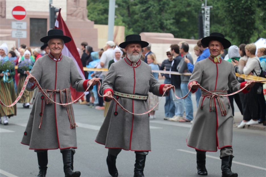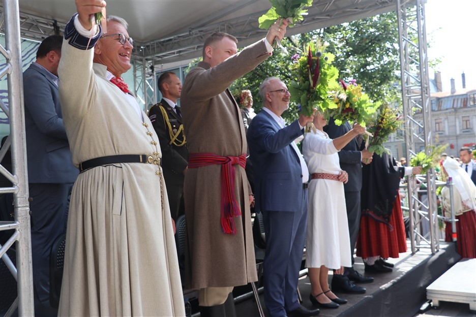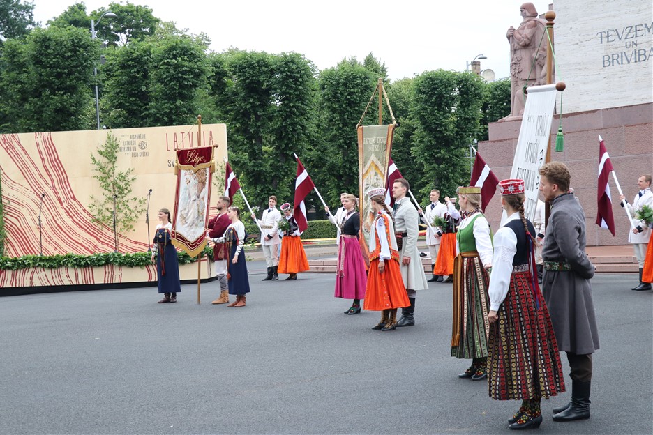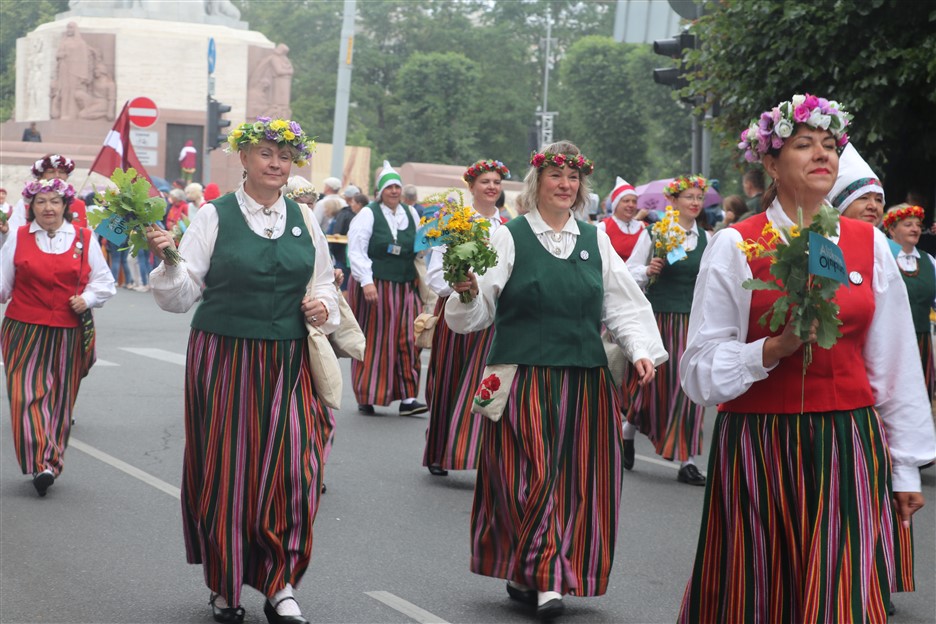 Šodien Rīgas ielas pieskandināja XXVII Vispārējo latviešu Dziesmu un XVII Deju svētku gājiens “Novadu dižošanās”. Tas sākās pie Brīvības pieminekļa ar Latvijas Valsts prezidenta Egila Levita un Latvijas Republikas kultūras ministra Naura Puntuļa uzrunām.