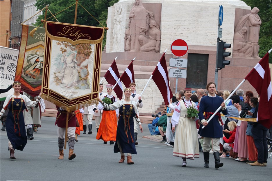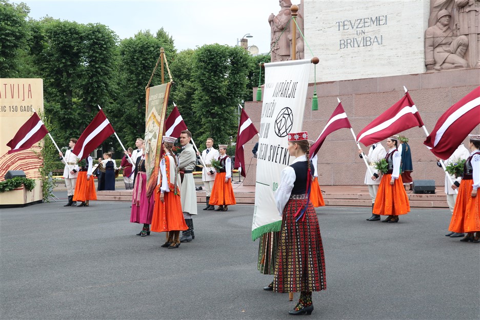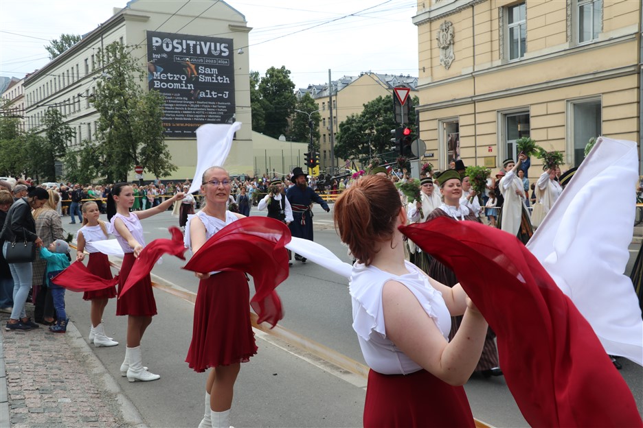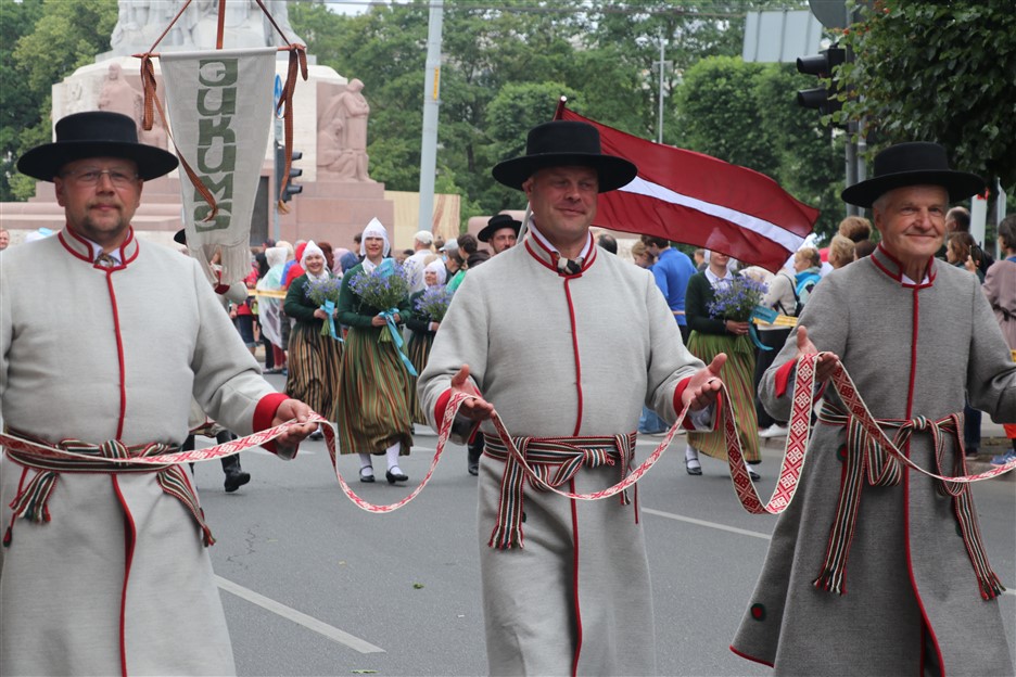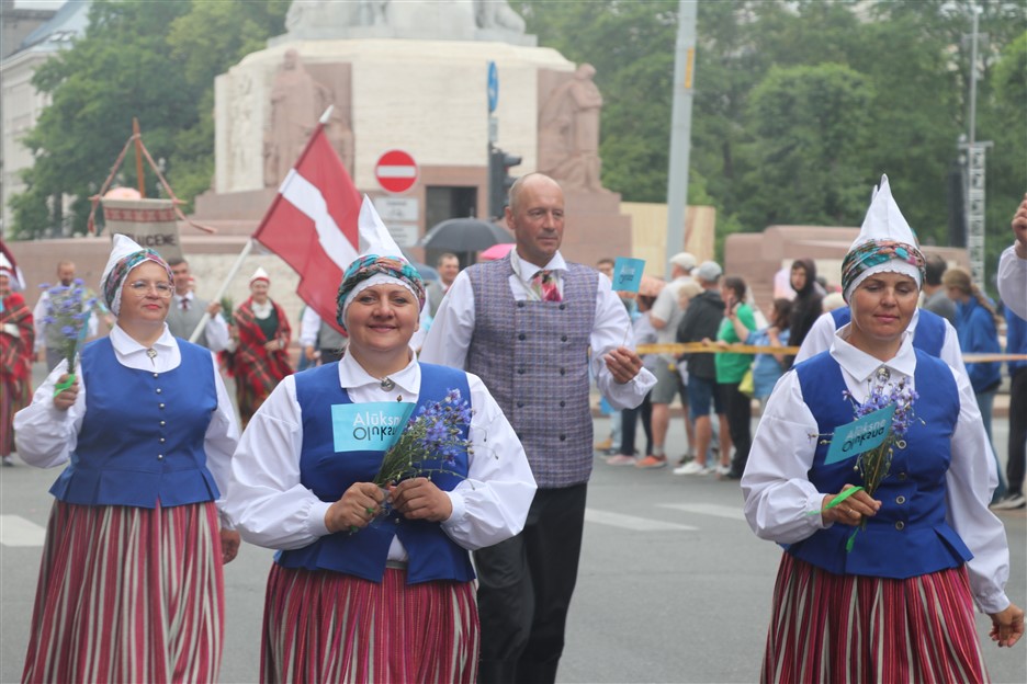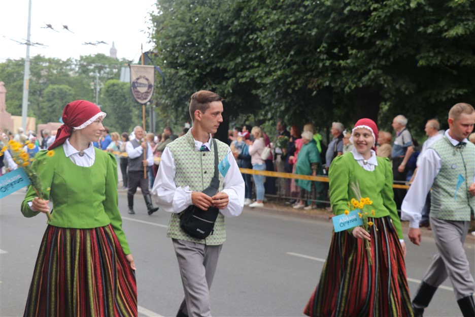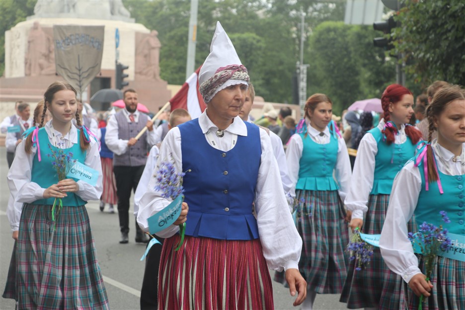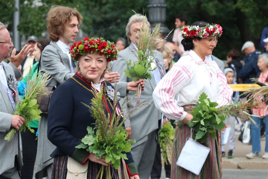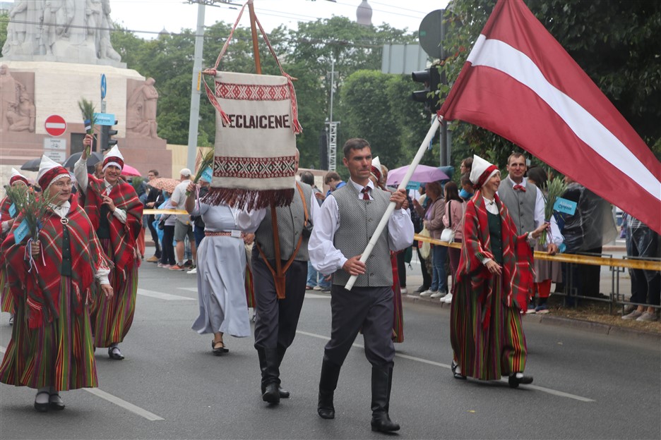 Šodien Rīgas ielas pieskandināja XXVII Vispārējo latviešu Dziesmu un XVII Deju svētku gājiens “Novadu dižošanās”. Tas sākās pie Brīvības pieminekļa ar Latvijas Valsts prezidenta Egila Levita un Latvijas Republikas kultūras ministra Naura Puntuļa uzrunām.