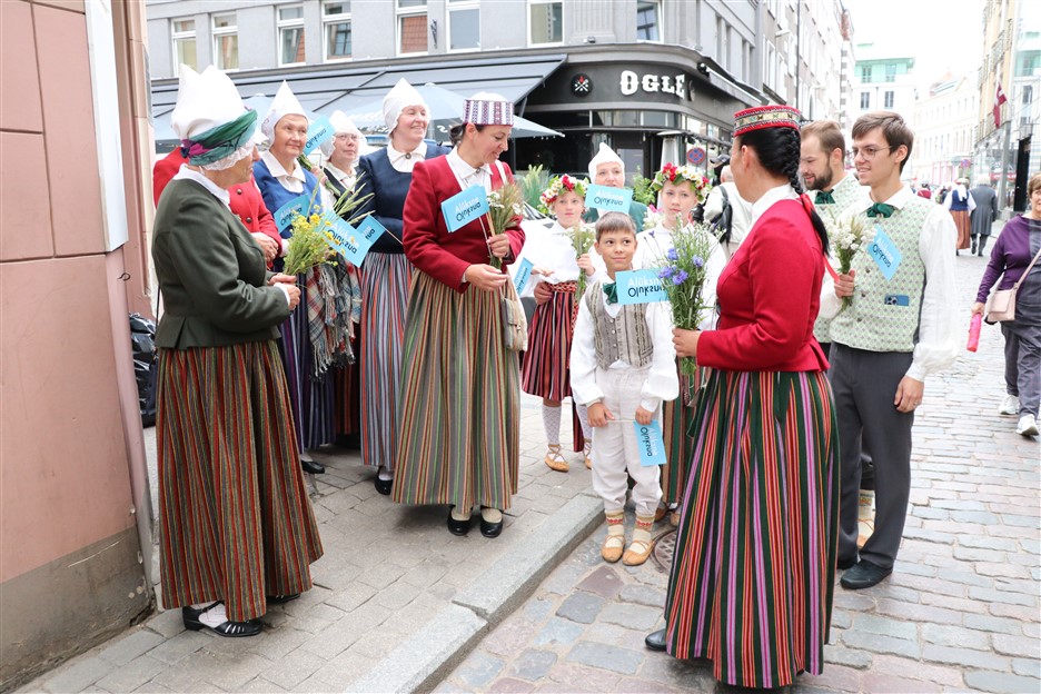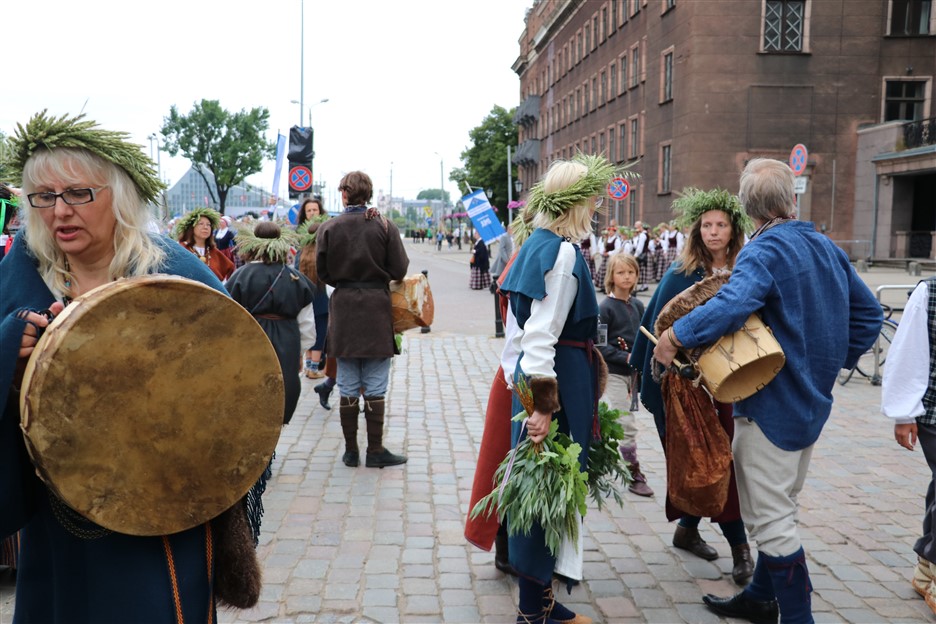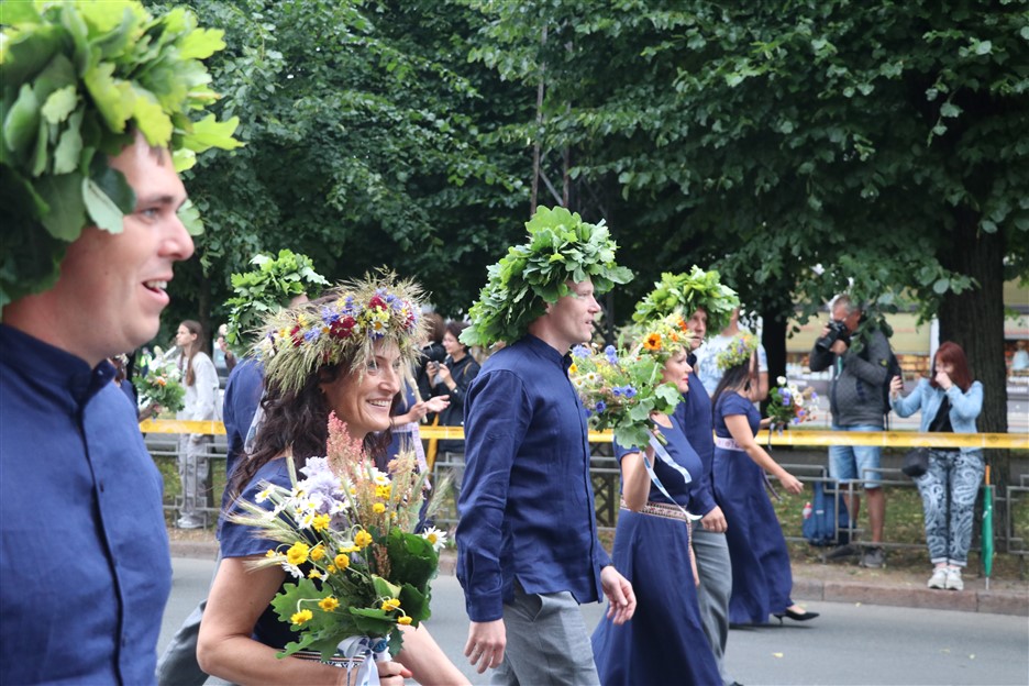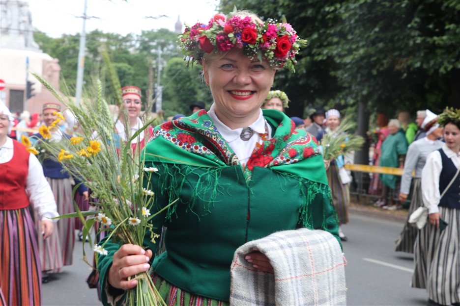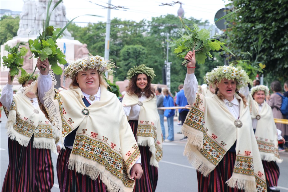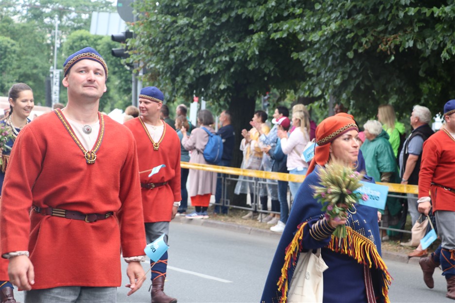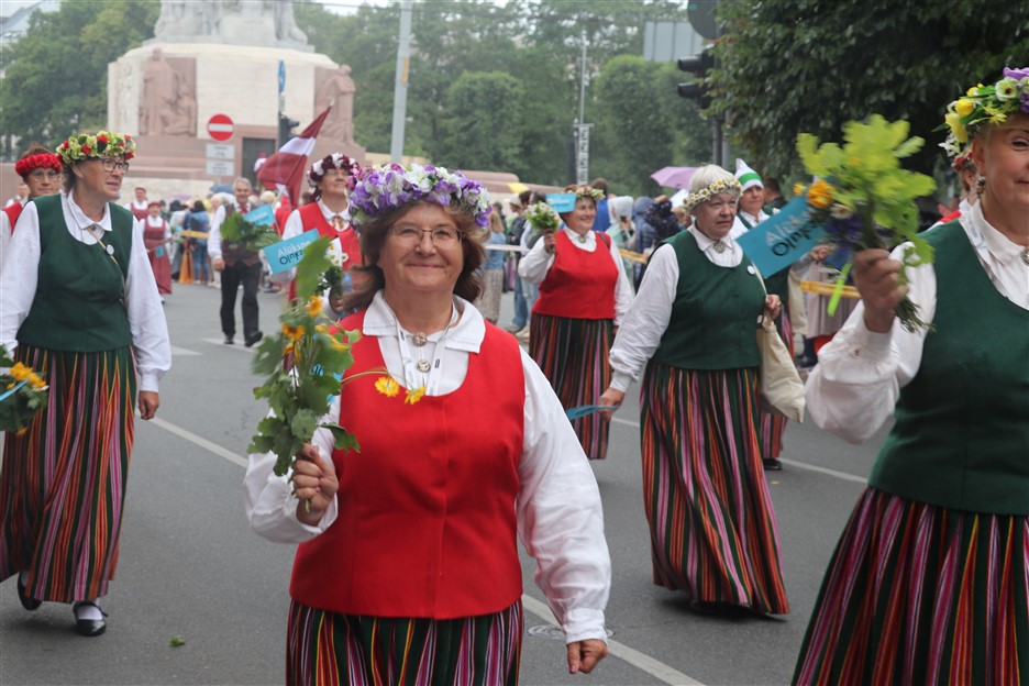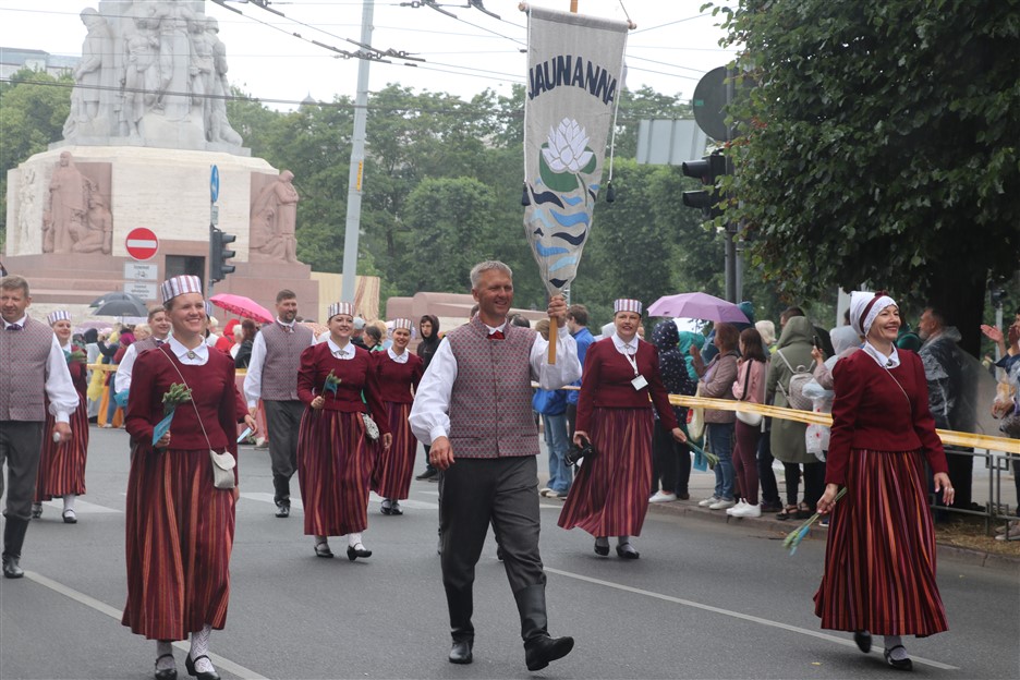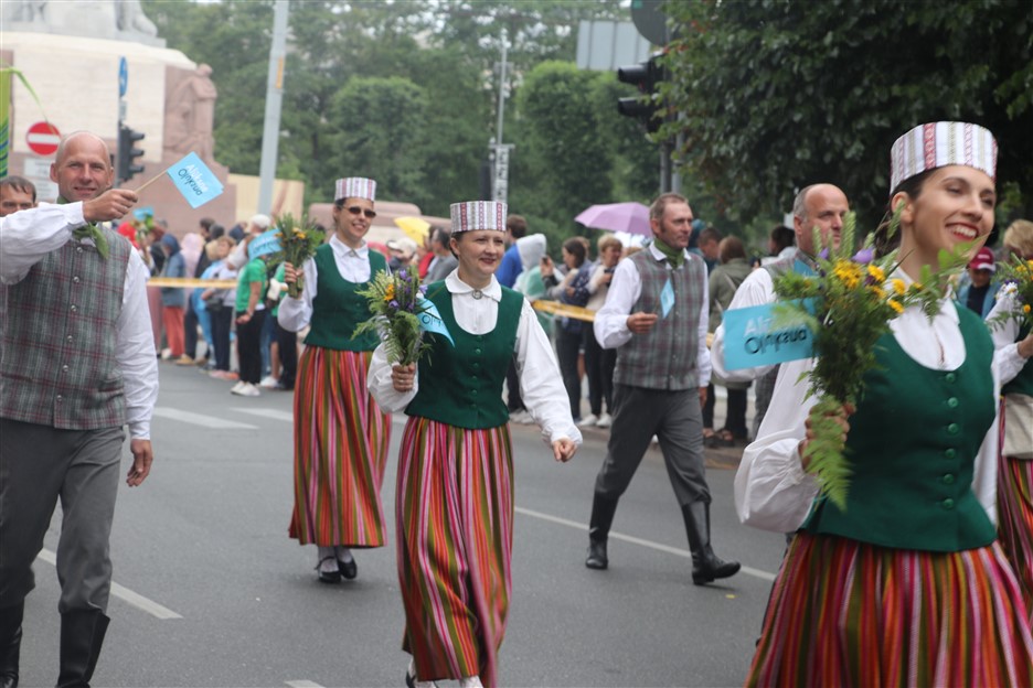 Šodien Rīgas ielas pieskandināja XXVII Vispārējo latviešu Dziesmu un XVII Deju svētku gājiens “Novadu dižošanās”. Tas sākās pie Brīvības pieminekļa ar Latvijas Valsts prezidenta Egila Levita un Latvijas Republikas kultūras ministra Naura Puntuļa uzrunām.