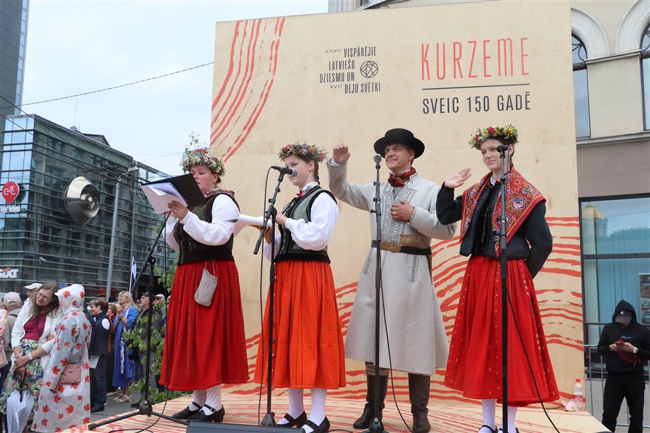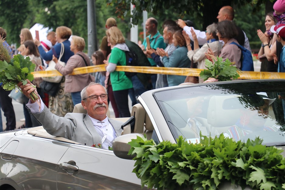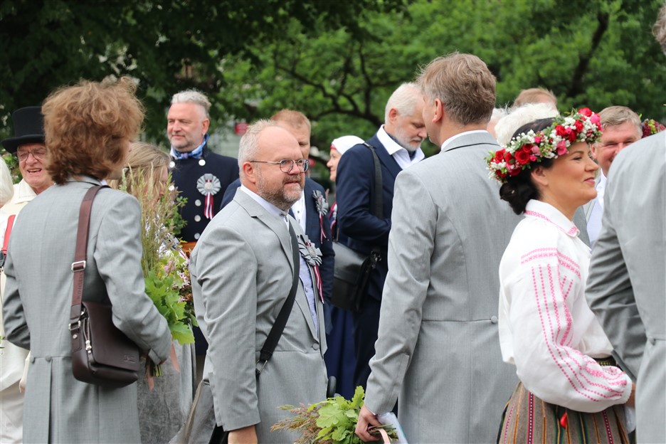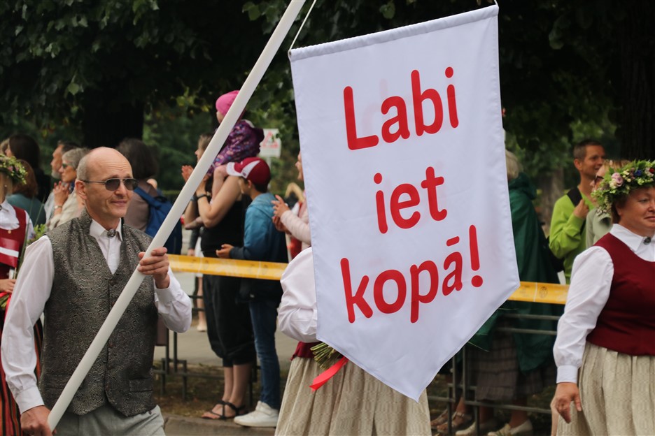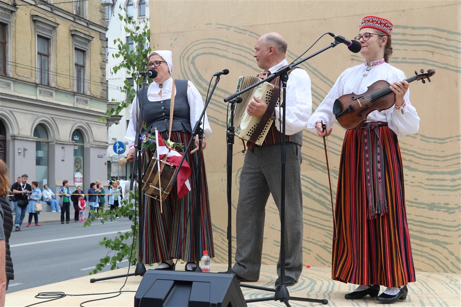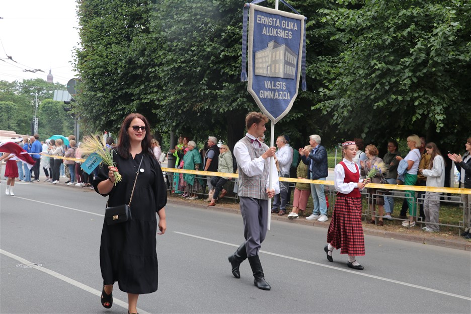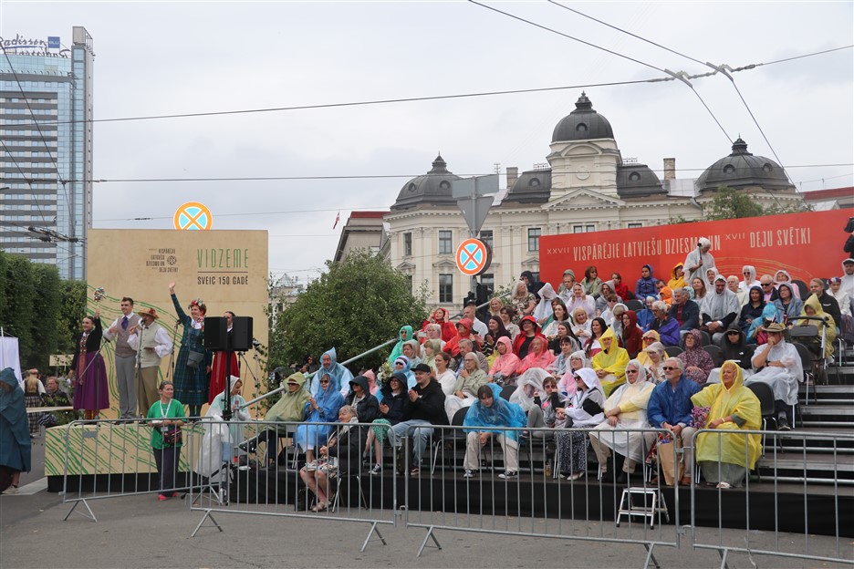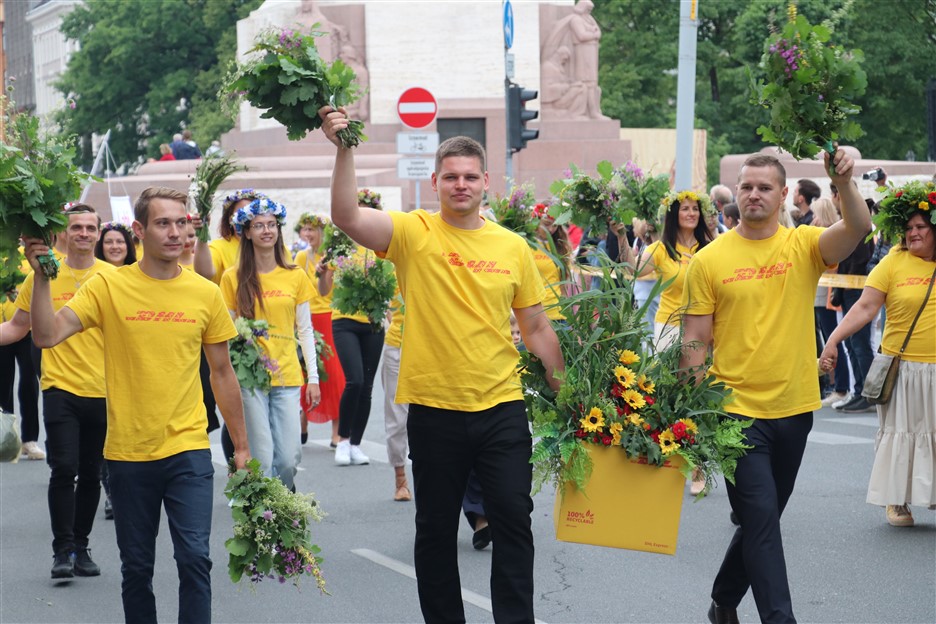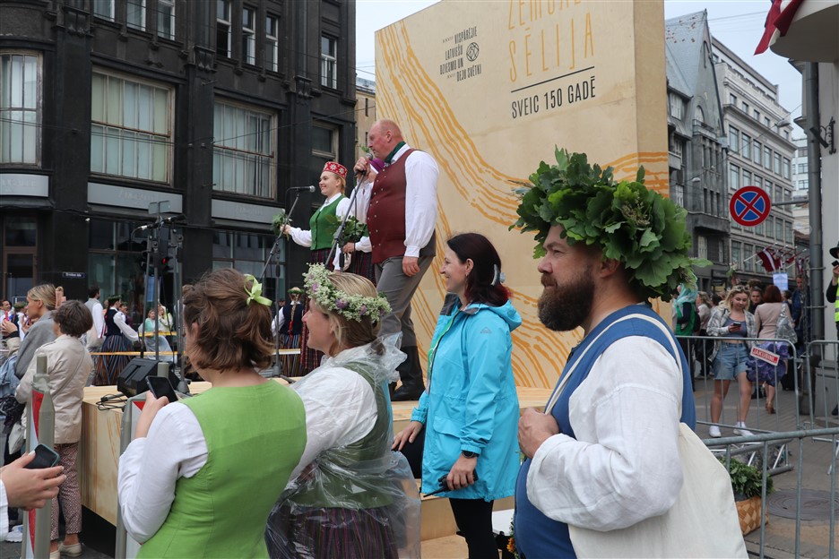 Šodien Rīgas ielas pieskandināja XXVII Vispārējo latviešu Dziesmu un XVII Deju svētku gājiens “Novadu dižošanās”. Tas sākās pie Brīvības pieminekļa ar Latvijas Valsts prezidenta Egila Levita un Latvijas Republikas kultūras ministra Naura Puntuļa uzrunām.