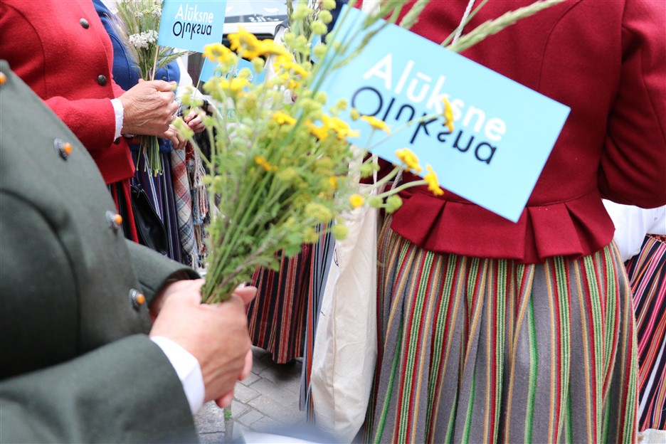 Svētku gājiena moto šogad bija “Novadu dižošanās” un alūksnieši godā cēla Malēnijas vīru lepnumu – garos svārkus, kuru Alūksnes muduraiņu rotājums ar krāsaina tūka aplikācijām ir vienīgai zināmais piemērs visā Latvijā. Tos ar lepnumu izrādīja Alūksnes Kultūras centra vidējās paaudzes deju kolektīva “Jukums” vīri, kuri savās rokās nesa Alūksnes iedzīvotāju kopīgi austo 10 metrus gari jostu, kas darināta pilsētas 95. jubilejas gadā un kurā ieaustas alūksniešu labās domas.