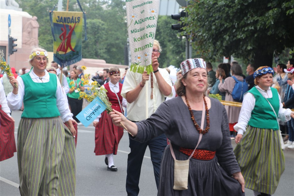 Gājiens aizvijās no Brīvības pieminekļa līdz Dailes teātrim. Alūksnes novads, kas svētkos pārstāvēts ar 434 dalībniekiem, gājienā devās aiz Aizkraukles novada, bet pirmais tajā gāja Valmieras novads, jo dziesmu svētku tradīcija pirms 150 gadiem aizsākās Dikļos. Gājiena dalībniekus sumināja Brīvības ielas malās stāvošie skatītāji. Paši svētku dalībnieki gan dziedāja, gan muzicēja, gan izdejoja deju rakstus. Vairākās vietās viņiem izskanēja arī īpaši sveicieni. Pie Dailes teātra svētku dalībniekus sveica Latvijas Valsts prezidents Egils Levits, Ministru prezidents Krišjānis Kariņš, Saeimas priekšsēdētājs Eduards Smiltēns un kultūras ministrs Nauris Puntulis, kā arī svētku virsvadītāji un virsdiriģenti. Spēlēja pūtēju orķestri, tai skaitā arī Ernsta Glika Alūksnes Valsts ģimnāzijas pūtēju orķestris Sandora Līviņa vadībā.