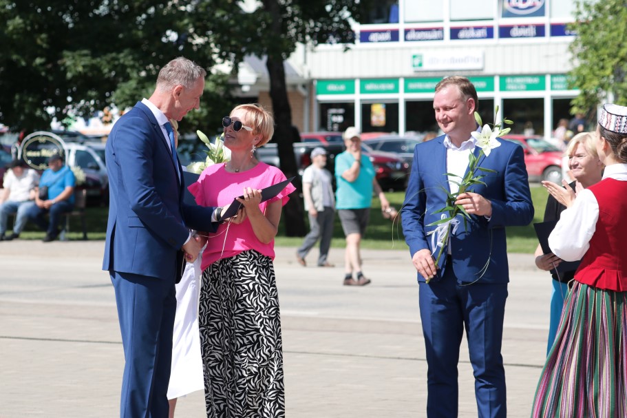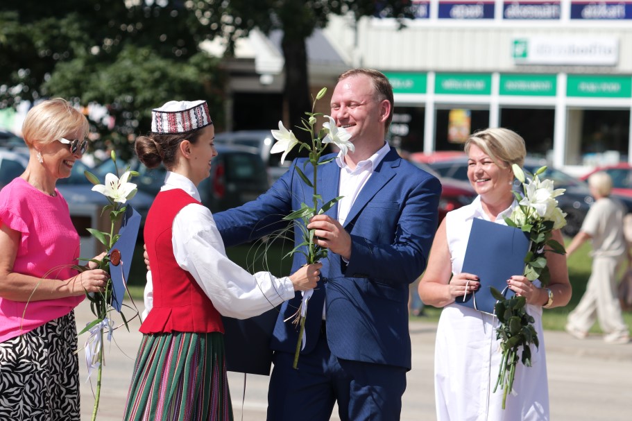 Alūksnes novada pašvaldības vadība sveica visus Latvijas skolu jaunatnes dziesmu un deju svētku dalībniekus un pateicās kolektīvu vadītājiem par ieguldīto darbu.