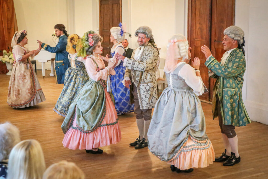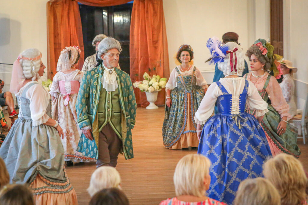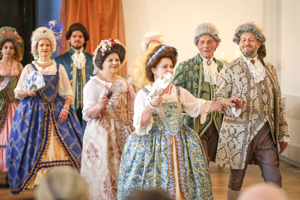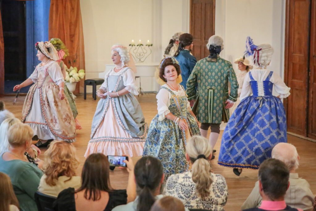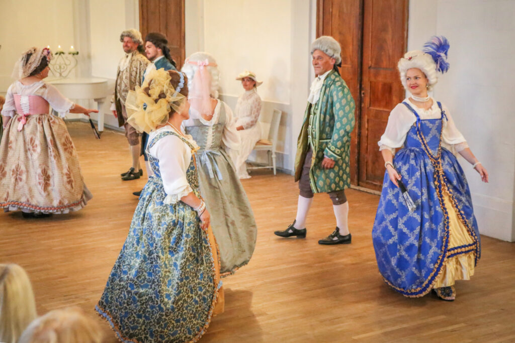 Te, kā senos laikos, varēja sastapt grezni tērpušos kungus un dāmas, svētku organizatori bija parūpējušies, lai to norisē piedalītos arī savulaik Gaujienā vasaras vadījušais Jāzeps Vītols ar kundzi Anniju un dzejnieks Ojārs Vācietis, kurš laikā, kad pilī vēl bija vidusskola, tur aizvadīja savus skaistākos jaunības gadus,par kuriem nu bija pārtapuši paši gaujienieši. Senās dejas varēja vērot vēsturiskās dejas kolektīva “Senvedere” izpildījumā,kā arī noskatīties teātra uzvedumu un klausīties mūziku.