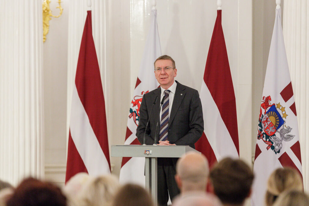 “Līdz šim Valsts prezidenta amatā esmu apmeklējis un viesojies vairākās Latvijas pilsētās un novados. Katrā Latvijas novadā var satikt talantīgus, uzņēmīgus un arī pašaizliedzīgus cilvēkus. Tie ir Latvijas cilvēki, par kuriem ikdienā mēs daudz nezinām, taču viņi nebaidās darīt, un viņiem arī sanāk. Tas ir sakāms, piemēram, gan par uzņēmējiem novados, gan augsti kvalificētiem speciālistiem slimnīcās, sociālās aprūpes iestādēs, gan talantīgiem pedagogiem Latvijas skolās. Tas ir sakāms arī par mūsu radošajiem cilvēkiem, kuri savu mūžu, talantu un intelektu ir veltījuši Latvijas kultūrai. Tādēļ ar muzikālu veltījumu vēlos pateikt paldies par viņu darbu, paveikto un arī viņu pienesumu Latvijai. Jo tieši uz šādiem cilvēkiem turas Latvija,” teica Valsts prezidents Edgars Rinkēvičs.