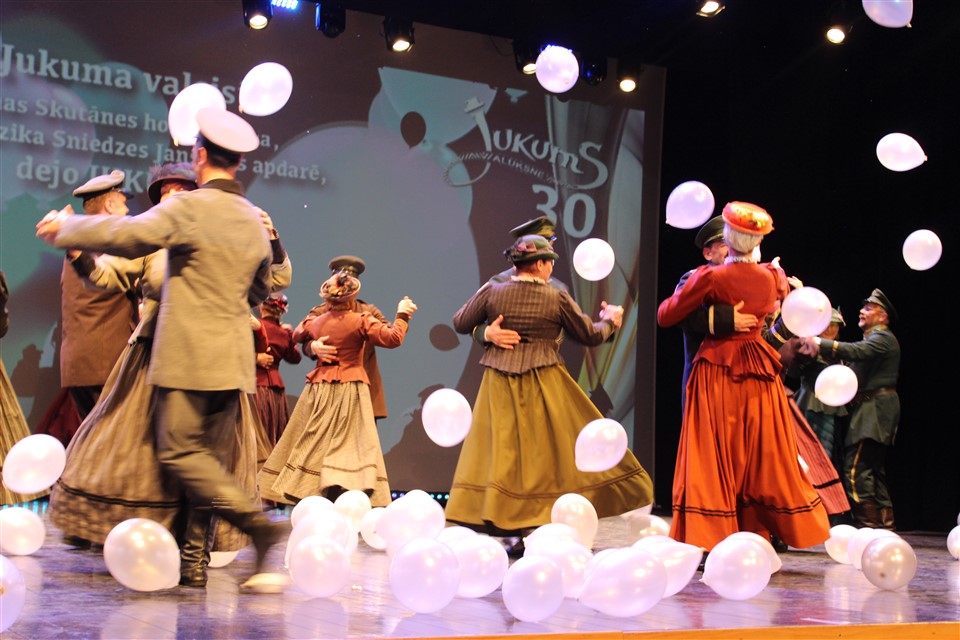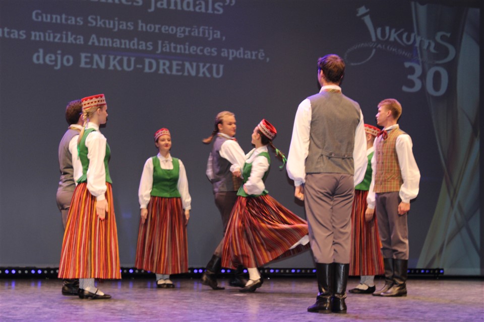 Deju “Jukums” vienmēr stāsta kā stāstu un arī jubilejas koncerts bija stāsts – par “Jukumu” un reizē arī – katru dejotāju pāri, ar atskatu uz deju kopas 30 gadiem. Šajos 30 gados “Jukumā” dejojuši 43 pāri, bet pašlaik dejo 13. Gadu starpība starp jaunāko un pieredzējušāko dalībnieku ir 54 gadi.