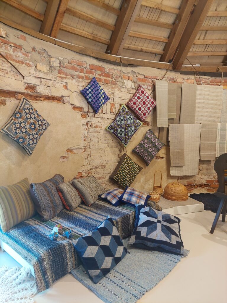 Kopumā izstādē apskatāmi sešpadsmit studijas dalībnieku darbi spilveni, sedziņas, grīdsegas, cimdi, zeķes, rotaļlietas, priekšauti, rokassprādzes, rotaslietas, māla trauki, pinumi un apģērbi, kurus varēs arī iegādāties.