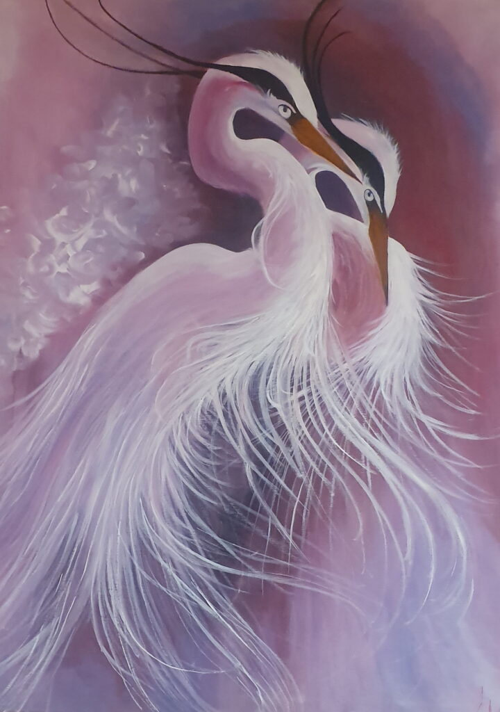 Idejas darbiem bieži vien rodas spontāni, arī, skatoties fotoattēlus vietnē “Pinterest”. Vairākkārt gleznojusi cilvēka ķermeņa daļas. Kad vēl nebija sākusi gleznot dzīvniekus, šķitis interesanti, kā attēlot putna spalvu.