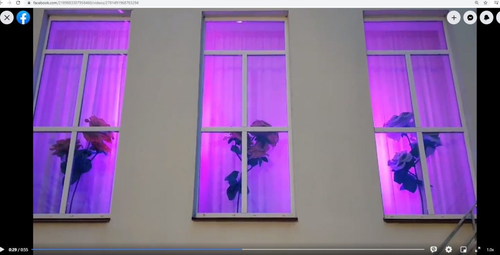 No 15. marta vakara, diennakts tumšajā laikā Kolberģa tautas nama logos vērojama gaismu spēle / ērkānšaviņš no Kolberģa tautas nama Facebook.com lapas.