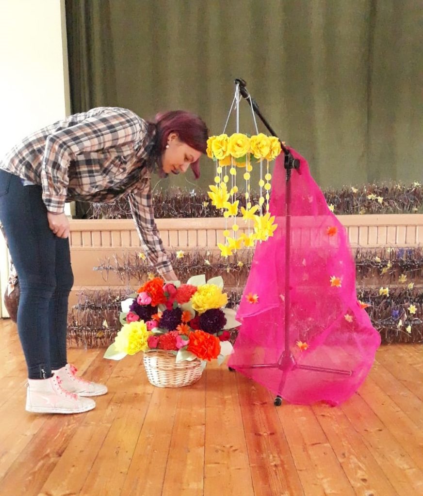 KOMPOZĪCIJAS DEKORU TAPŠANA Mārkalnes tautas namā. FOTO: SANITA SILIROVA