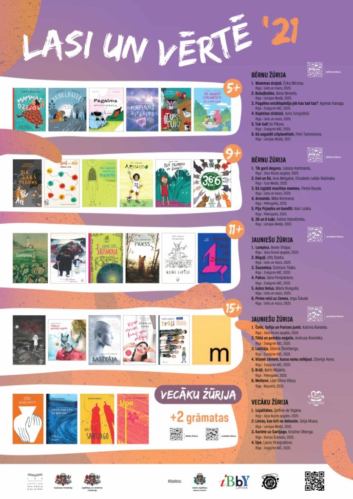 Latvijas Nacionālās bibliotēkas (LNB) izveidotā un vadītā lasīšanas veicināšanas programma šogad notiek jau 21. gadu. Šī gada “Bērnu, jauniešu un vecāku žūrijas” kolekciju veido 28 grāmatas no astoņām izdevniecībām. Tās ir 11 oriģinālliteratūras grāmatas – gan spožas debijas bērnu literatūrā (Ērika Bērziņa, Inga Žolude, Elizabete Lukšo – Ražinska); dzejā – Lote Vilma Vītiņa; zinātniskās fantastikas žanrā – Džeina Šteinberga, gan jau iemīļotu bērnu un jauniešu grāmatu autoru devums – Juris Zvirgzdiņš, Agnese Vanaga, Māris Rungulis, Ieva Melgalve, Dzintars Tilaks un Kristīne Ulberga. Tulkoto literatūru pārstāv 17 izdevumi no desmit valodām – igauņu, lietuviešu, somu, zviedru, ukraiņu, franču, angļu, vācu un nīderlandiešu.