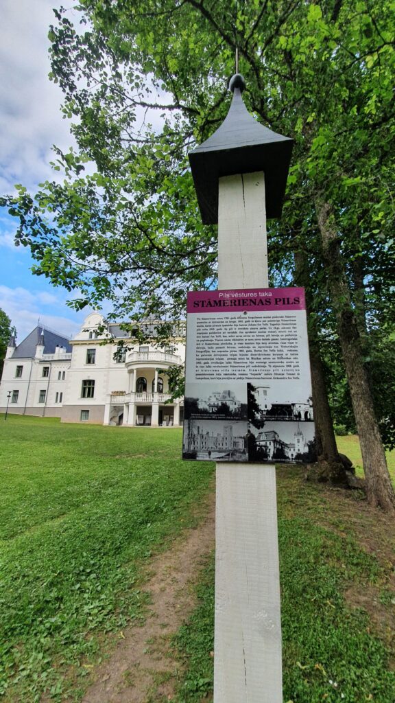 Stāmerienas pils celta 19. gadsimta pirmajā pusē, taču vairākkārt paplašināta un pārbūvēta. Savu pašreizējo apjomu tā ieguva pēc 1905. gada revolūcijas, kad muiža tika nodedzināta un izdemolēta. Pēc 2. Pasaules kara ēkā darbojas lauksaimniecības tehnikums un padomju saimniecība “Stāmeriena”. Pēc Latvijas neatkarības atgūšanas pils ilgstoši netika izmantota un apmeklētājiem nebija regulāri pieejama. Ar pašvaldības un ERAF finansējumu veiktie darbi 1,46 miljonu eiro apmērā – jumta, fasādes, pamatu, logu, dekoratīvo elementu atjaunošana un restaurācija, kā arī inženiertīklu izbūve – ir nozīmīgs solis, lai Stāmerienas pils pilnībā atgūtu savu agrāko spožumu, jo nams ne tikai kļuvis vizuāli pievilcīgs, bet ir nodrošināta arī tā iekštelpu saglabāšana. Tagad darbs var turpināties arī pie ēkas iekštelpu un interjera atjaunošanas.