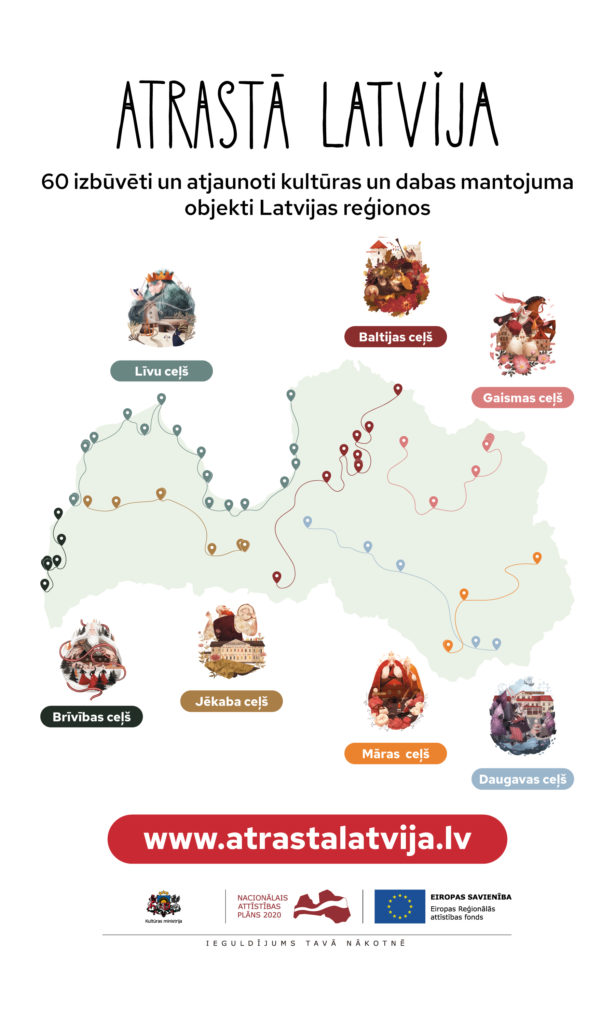 Objektu atjaunošanas un būvniecības darbi īstenoti kopš 2018. gada divās kārtās, atjaunojot un izbūvējot 60 kultūras un dabas mantojuma objektus 40 Latvijas pašvaldībās, kā arī veidojot un attīstot tajos jaunus kultūras un tūrisma pakalpojumus. Atsevišķos objektos darbi vēl turpinās, un tie tiks pilnībā pabeigti 2022. gada nogalē. No kopumā ieguldītajiem 67 965 274,81 eiro, 34 913 795,12 eiro ir Eiropas Reģionālās attīstības fonda līdzekļi, bet 33 051 479,69 eiro ir valsts un pašvaldību ieguldījumi.
