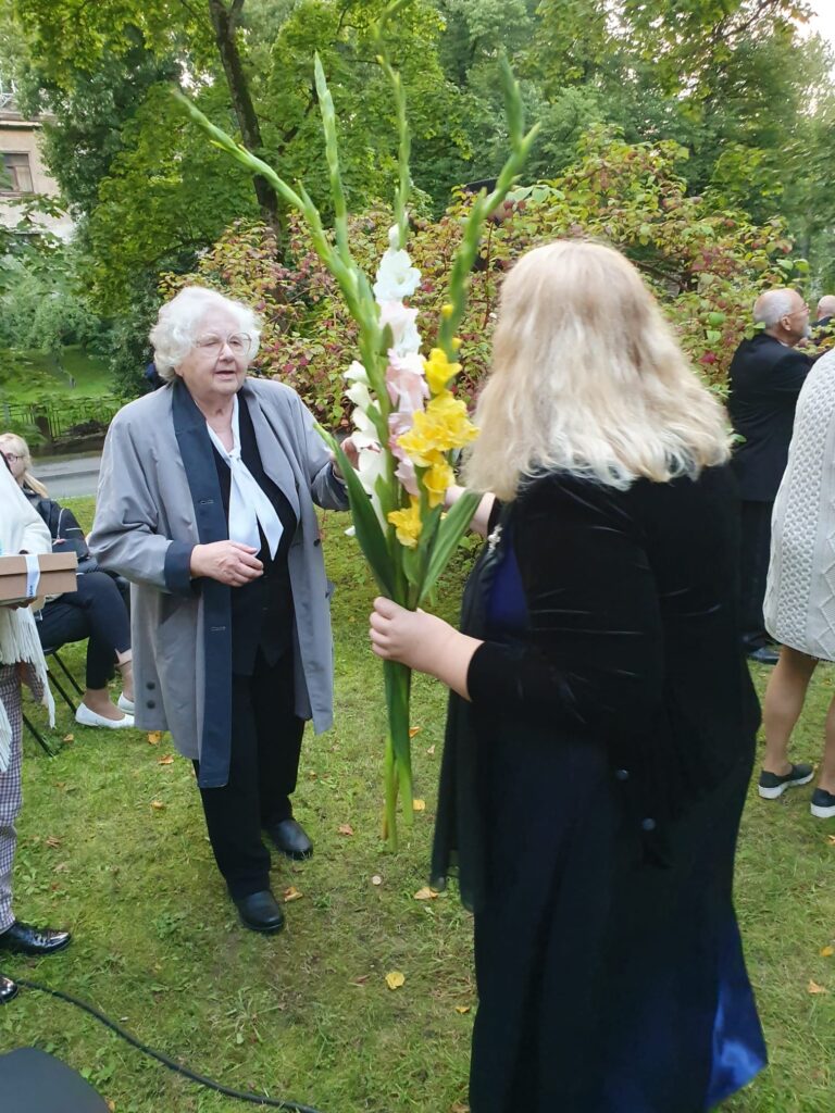 Cieņas un mīlestības apliecinājumus līdz ar sveicieniem no Alūksnes un Apes novadu dziedātāju un kultūras darbinieku saimes Maestro Račevskim veltīja Alūksnes novada pašvaldības Kultūras un sporta nodaļas vadītāja Sanita Eglīte, vēlot radoši piepildītus un muzikālus arī turpmākos gadus.