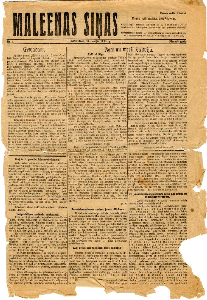 “Aprit 100 gadi, kopš 1925. gada 14. maijā Alūksnē, Reiņa Pastalnieka tipogrāfijā tika iespiests pirmais “Malienas Ziņu” numurs. Pirmās brīvvalsts laika periodā tautā populārās “Malienas Ziņas” sniedza plašu ieskatu novada politiskajā, ekonomiskajā, sabiedriskajā un kultūras dzīvē. Katra izdevuma pievienotā vērtība bija arī amatnieku un tirgotāju ievietotie sludinājumi, kas vēstīja par rosīgu dzīvi Alūksnē un tās apkārtnē. Par to, kādēļ būtu jāiegādājas kārtējais izdevums, “Malienas Ziņas” 1930. gados pamatoja: “jo “Malienas Ziņas” ir plašākais laikraksts Alūksnē un apkārtnē, kas atspoguļo vietējo dzīvi priekos, bēdās un sniedz sīku informāciju par apkārtnes ievērojamākiem notikumiem, jo “Malienas Ziņas” sniedz interesantu vietēja rakstura lasāmvielu, jo “Malienas Ziņās” “sludinājas” visi, kam tik vien kas ko pārdot vai pirkt, jeb cita kāda vajadzība, jo “Malienas Ziņās” varbūt par Jums pašiem kaut kas būs iekšā…” Skaisti! Protams, pēckara periodā vietējā laikraksta nosaukums un saturs tika pakļauts padomju ideoloģijai un cenzūrai. 1946. gadā lasītāji savās pastkastītēs saņēma laikraksta “Padomju Alūksne” pirmo numuru, savukārt 1967. gadā tos sveicināja Alūksnes rajona laikraksts “Oktobra Karogs”. Atmodas laikā, 1989. gadā, laikraksts atkal atguva savu sākotnējo nosaukumu un uzskatu brīvību, joprojām akcentējot aktualitātes vietējā un valsts dzīvē, kā arī stāstot par nozīmīgiem kultūrvēstures jautājumiem un personībām.