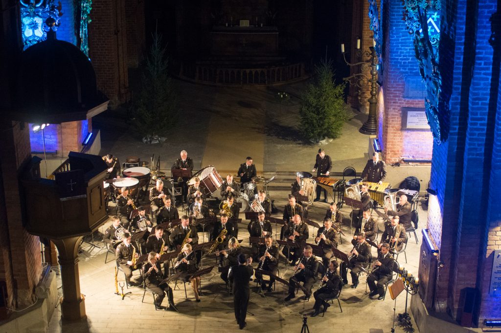 Koncerta programmā ir iekļauti Dmitrija Šostakoviča, Džeimsa Kurnova, Jozefa Mora, Leroja Andersona, Ričarda Karpentera, Rejnaldo Hāna, Bila Holkomba un citu autoru darbi. Koncertā uzstāsies vairāki solisti – seržants Dmitrijs Maksimovs (angļu rags), seržants Kārlis Krapauskis (eifonijs) un kaprālis Gatis Supe (vokāls).