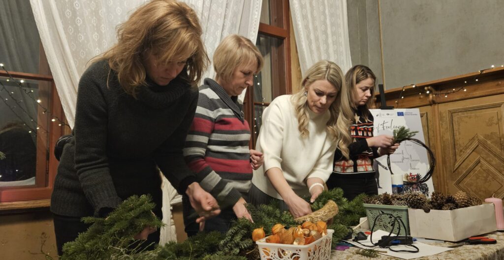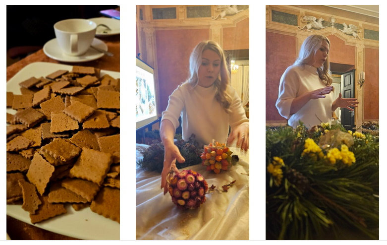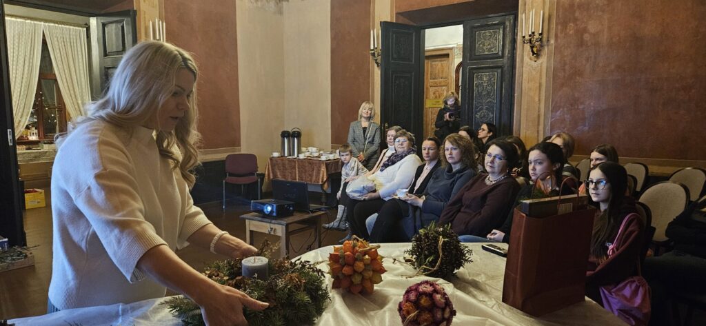 Darbnīcas ievadīja Alūksnes novada muzeja Izglītojošā darba un darba ar apmeklētājiem vadītāja Jolanta Baldiņa, pastāstot par Adventes vainagu izcelsmi un nozīmi, un prezentācijā parādīja, kādi skaisti darbi tapuši ar floristes Sanitas Rušķes rokām un talantu.