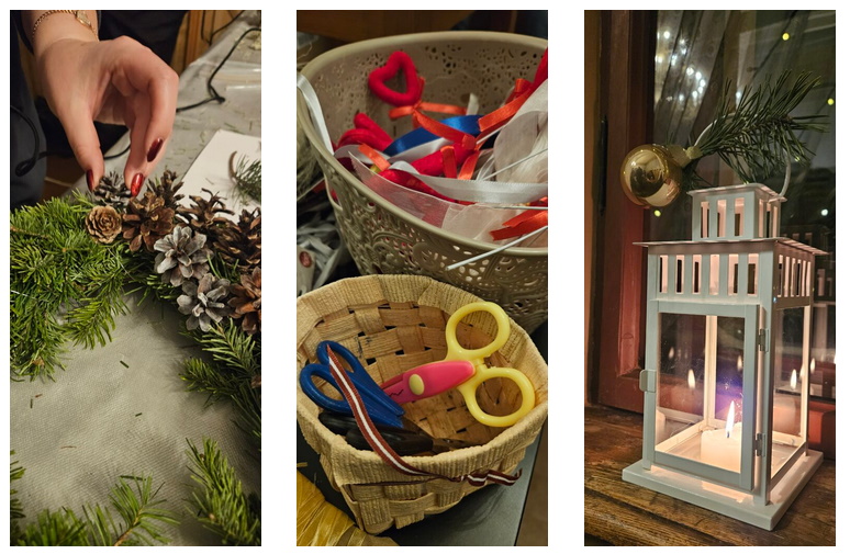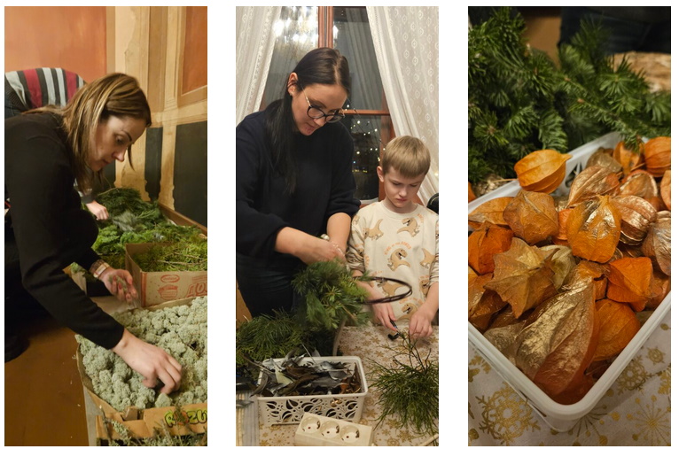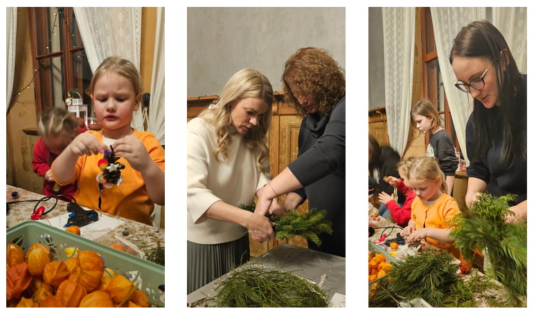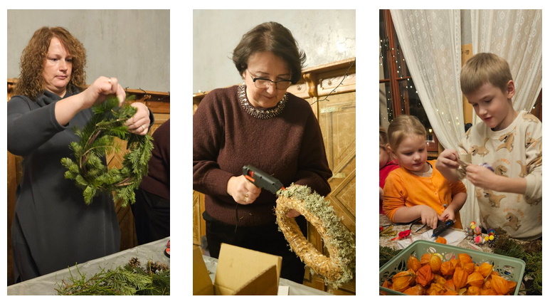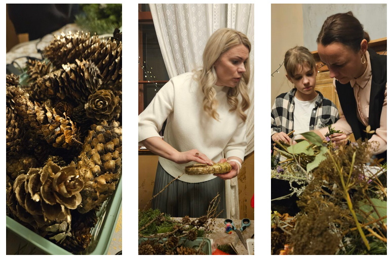 Iedvesmots, katrs varēja ķerties pie sava vainaga gatavošanas, sākot no pamatnes līdz gatavībai tajā ievietot četras svecītes. Muzeja darbinieki darbnīcām bija sarūpējuši visplašāko materiālu klāstu, līdz ar to interesentiem bija iespēja radīt daudzveidīgus vainadziņos, sākot no latviski ieturētiem ar dabiskiem materiāliem līdz pat košām, mirdzošām detaļām ieskautām Adventes rotām. Piektdienas vakara pasākumu apmeklēja gan ģimenes ar bērniem, gan draudzenes, gan interesenti ar nelielu pieredzi šādos rokdarbos, gan pilnīgi iesācēji. Taču tas nekas, jo kā teica darbnīcu vadītāja – šajā procesā nekas nav pareizi vai nepareizi. Un tā arī bija – katrs mājās priecīgs aiznesa paša gatavotu svētku rotu.