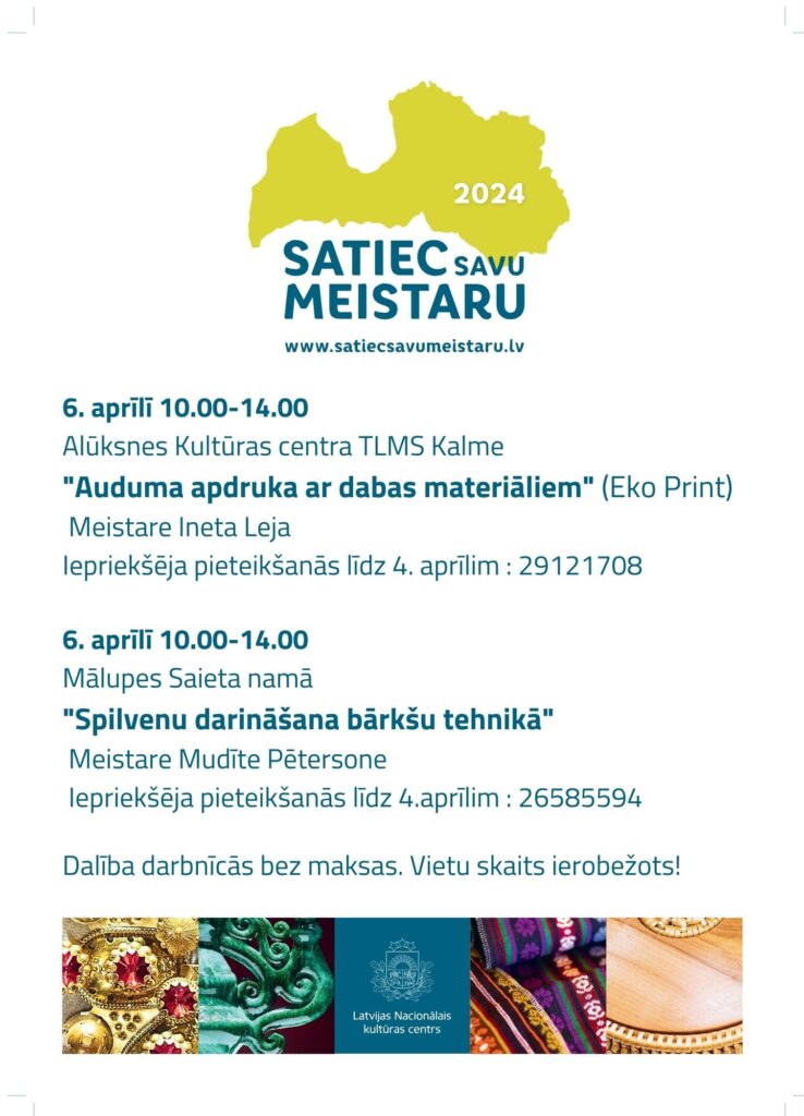 Latvijas Nacionālais kultūras centrs sadarbībā ar pašvaldībām un amatu meistariem, kopīgi rīko pasākumu “Satiec savu meistaru!” jau 16. reizi, pulcējot meistarus un viņu “mācekļus” ap 200 norišu vietās.