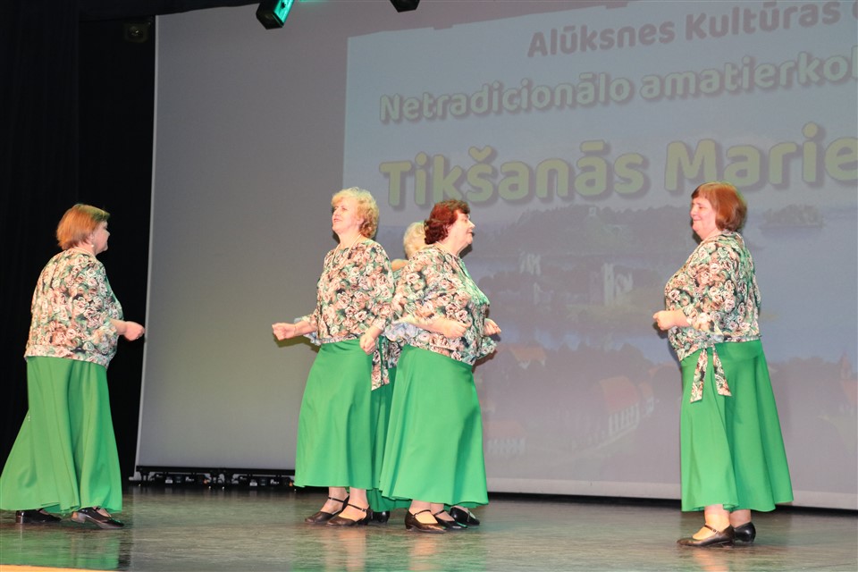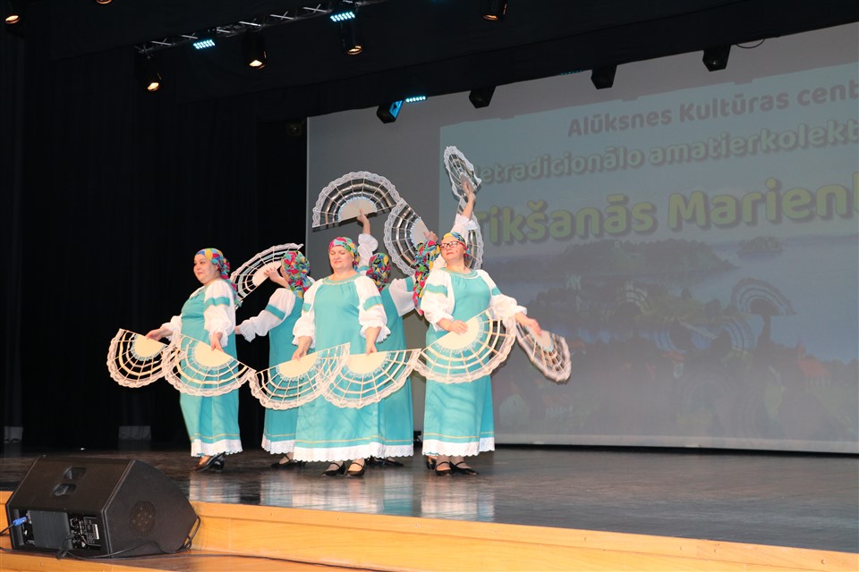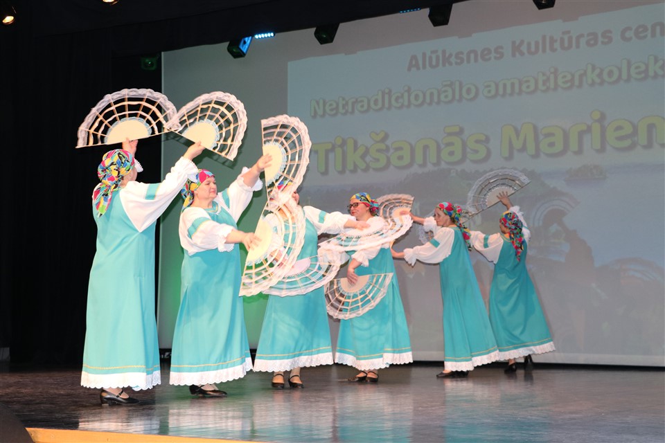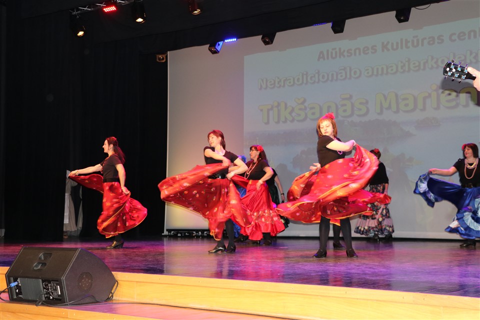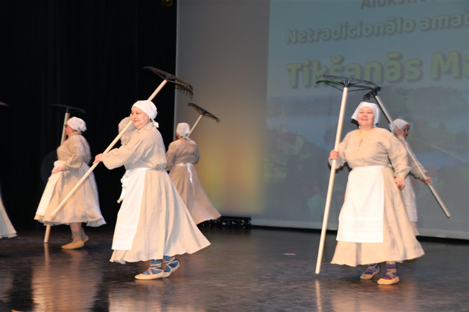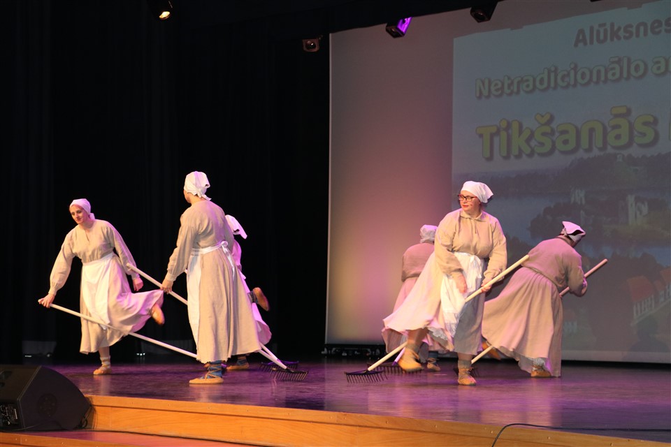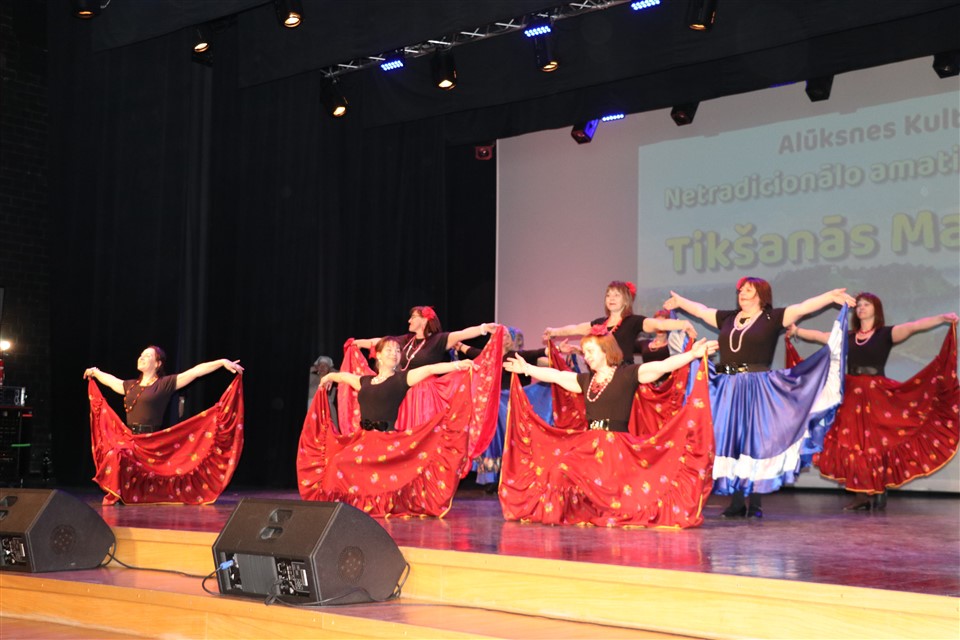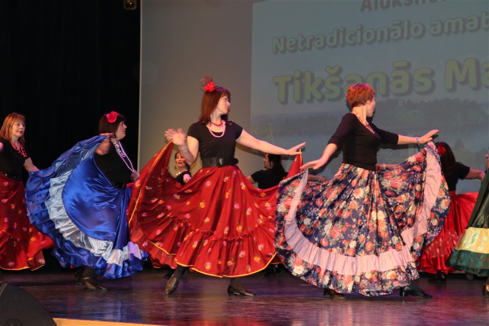 Svētdien, 19. martā, Alūksnes novada Kultūras centrā uz lielās skatuves tikās pavisam deviņu netradicionālās amatiermākslas kolektīvu dalībnieki. Koncertā piedalījās “Rūtas” no Kubuļiem, “Pīlādzītis” no Smiltenes, “Leno” no Gulbenes, “Sinda” no Gaujienas, “Smiltesele” no Smiltenes pagasta, “Sidraba pavediens” no Alūksnes, “Jautrie podi” no Zeltiņiem, “Tikai tā” no Pededzes un Veclaicenes līnijdeju grupas dejotāji.