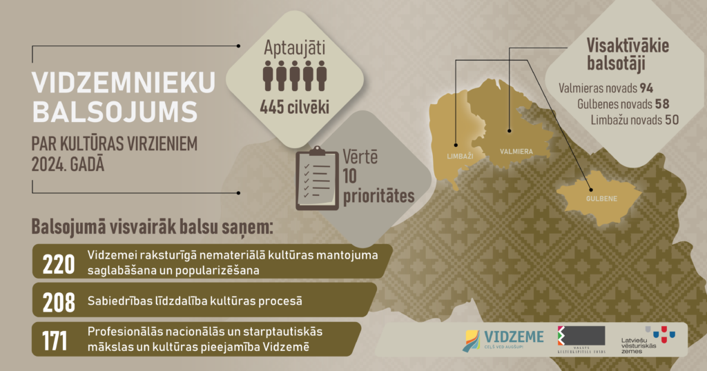 kultūras jomā Vidzemē 2024. gadā. Trīs vislielāko balsotāju atbalstu saņēmušie