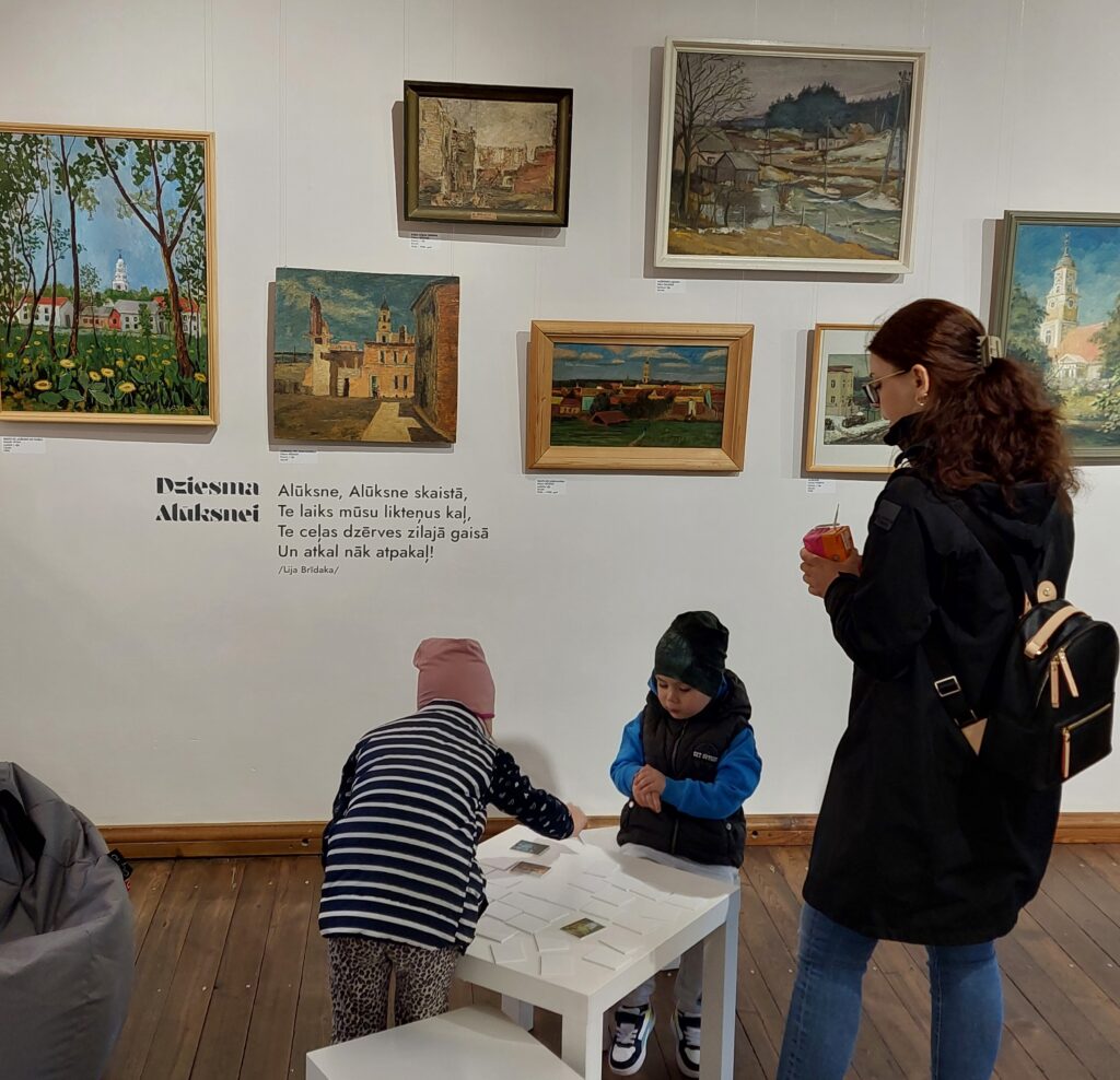 Padomāts arī par jaunāko muzeja auditoriju. “Mazākie apmeklētāji caur spēlēm un radošām aktivitātēm varēs iepazīt izstādē aplūkojamos mākslas darbus,” stāsta L. Apšusala. Viņa aicina – ikviens apmeklētājs varēs uzzīmēt savu Alūksni – tādu, kādu to jūt un redz pats. Izstādi papildina ceļojuma motīvs – 20. gadsimta koferi no muzeja krājuma, kas simboliski aicina apmeklētājus doties Alūksnes izzināšanas piedzīvojumā.