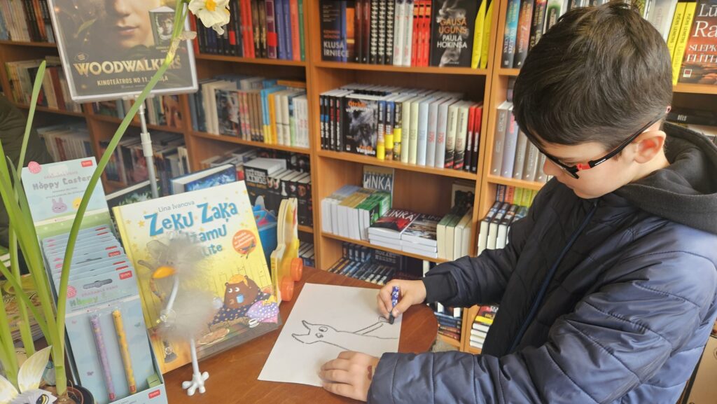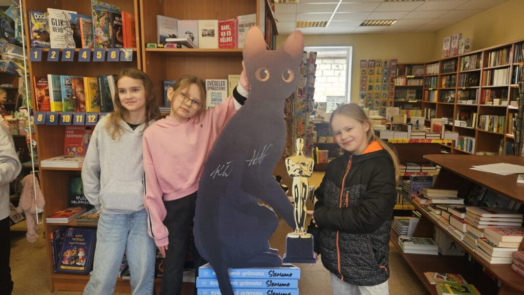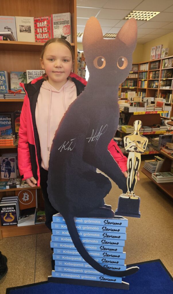 Taču ne tikai. Atnācējiem, jaunākajai auditorijai, ir iespēja piedalīties grāmatnīcas darbinieku sarūpētajās aktivitātēs, piemēram, uzzīmēt “Straumes” kaķi vai kādu citu multfilmas tēlu. Labākos zīmējumus izliek grāmatnīcas skatlogā, un to autoriem sarūpēta balva.
