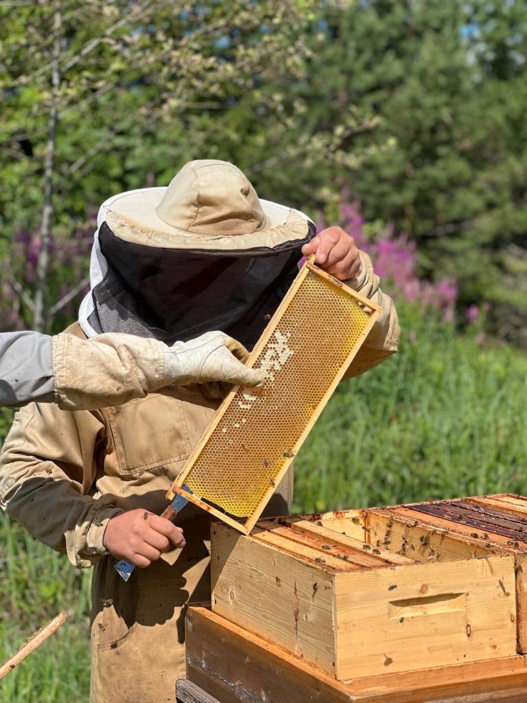 Savukārt, sezonai noslēdzoties, arī biškopjiem pietiek darba. Tad Raitis nodarbojas ar medus rāmīšu pielabošanu un gatavošanu no jauna.